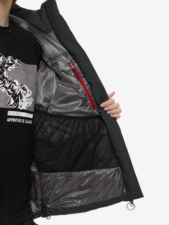 - два высоких теплых кармана по бокам куртки доступны и «под рюкзаком»