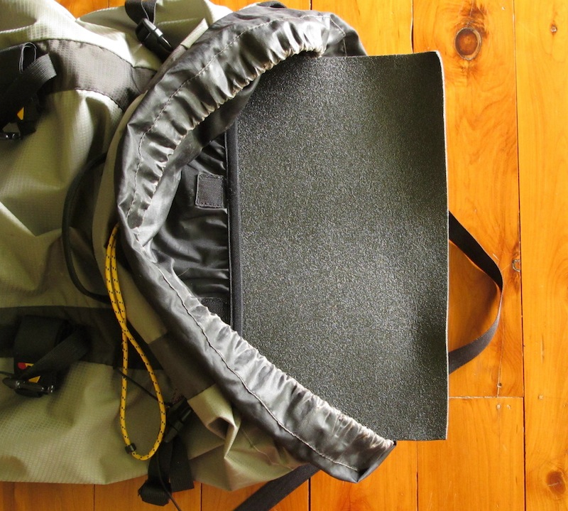 Это рюкзак с внутренним каркасом. Каркас состоит из листа жёсткого пенопласта, спрятанного в карман на спинке, как показано тут. Пена – лёгкая, но хорошо служит для придания рюкзаку жёсткости и формы и защиты моей спины от жёстких выступов. Лист пены имел неудачный загиб по горизонтальной оси, что немого изгибало рюкзак, когда он был пустым. Возможно, если бы при обрезке куска пены они ориентировали лист в направлении другой оси, это исправило бы проблему. Но как только я положил пару вещей в рюкзак – проблема тут же исчезла. Даже после 2 месяцев продолжительного использования в Европе пена не показала заметных признаков износа, только лишь небольшие изгибы по краям.