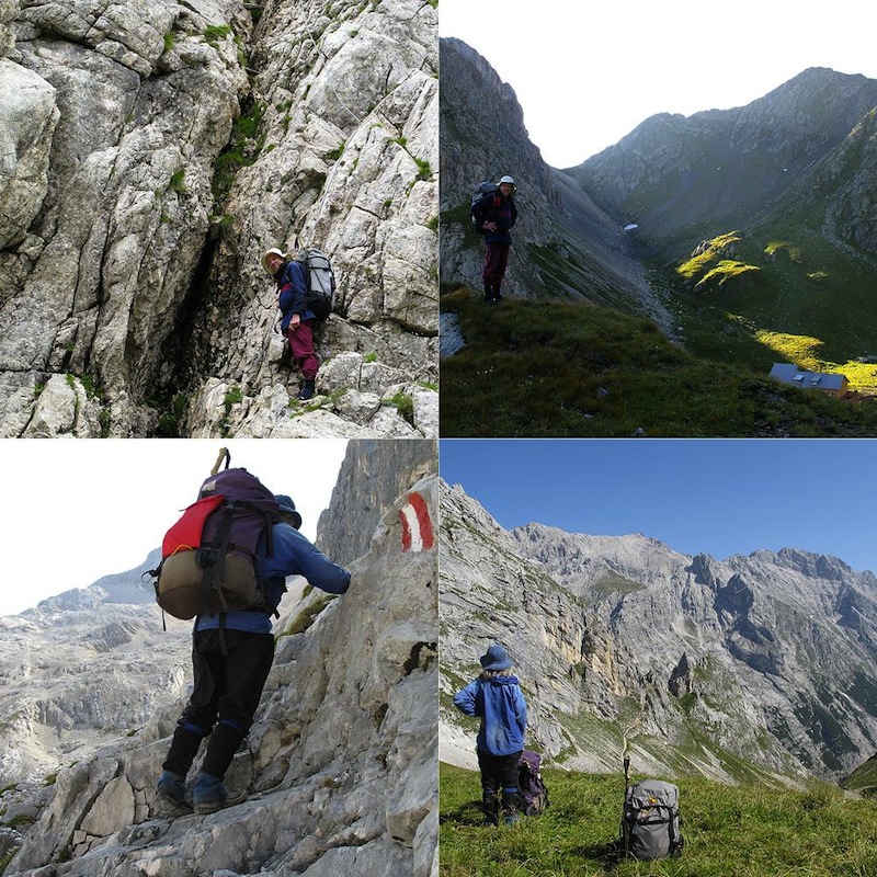 - Сью забирается к MeilarHutte по известняковым горам – 3 тысячи метров вниз и вверх в этот день, который закончился крошечным пятачком лужайки, едва пригодной для стоянки. По некоторым причинам Сью было сложно заставить сфотографировать меня с рюкзаком Баск в этот день…