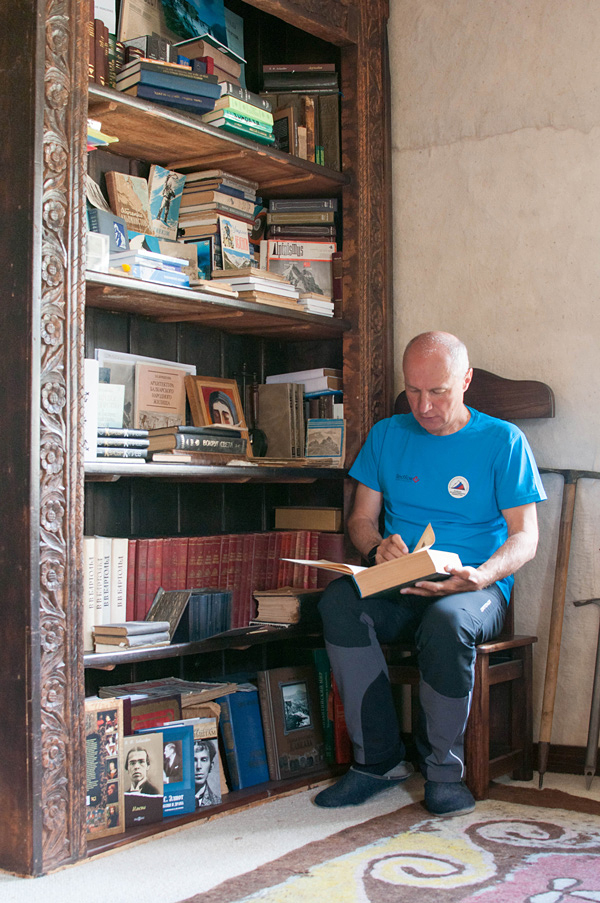 И такие раритеты мы храним. В библиотеке собрано Башни много книг. Редкие книжки по альпинизму, первое издание «Категория трудности», Шатаева. Он здесь много ходил. Одна из первых книжек про Безенги 52-го года, Гарфа. Побежденные вершины. Когда-то популярный «Спутник альпинизма», по которому все зачеты сдавали. Всего по чуть-чуть.