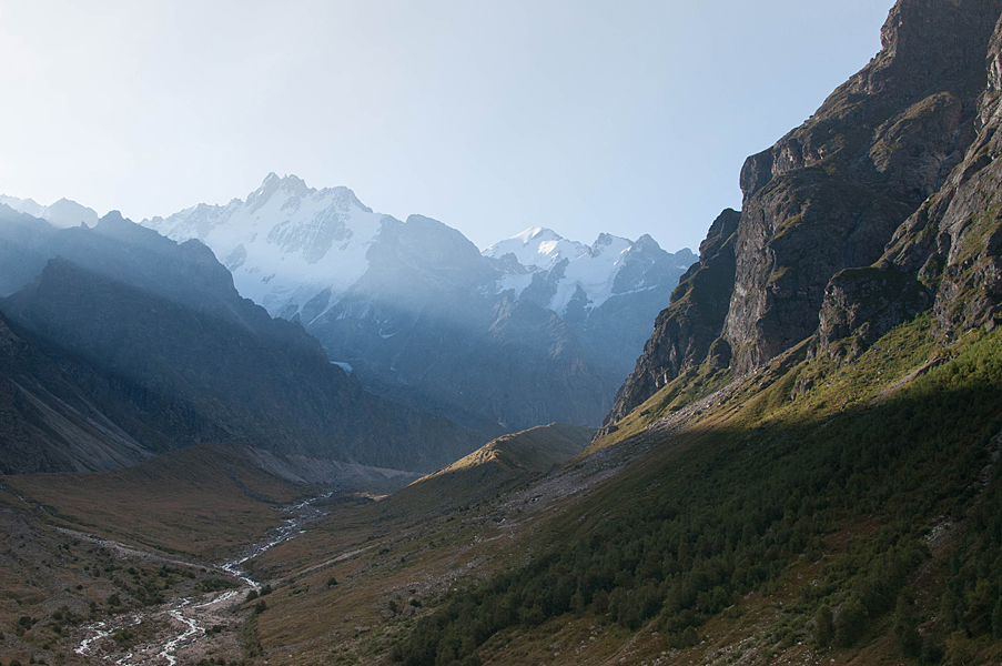Ещё одна особенность альпинизма в Безенгах — длинные подходы. Это тоже испытание для новичков. За одной горой приходится идти 7-10 часов. Для спортсменов это в порядке вещей, они сразу выходят на три-пять восхождений, и есть смысл идти так далеко.