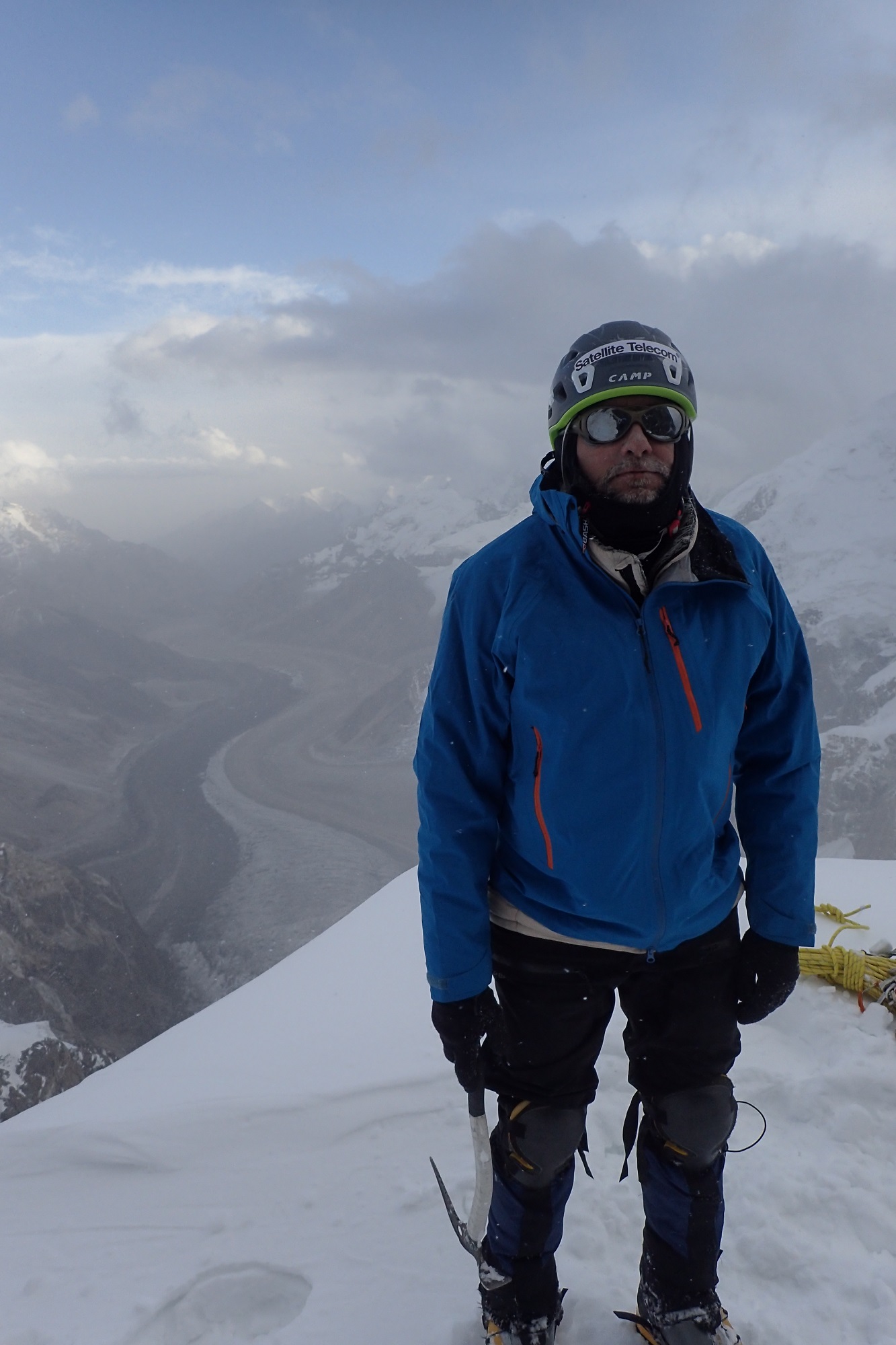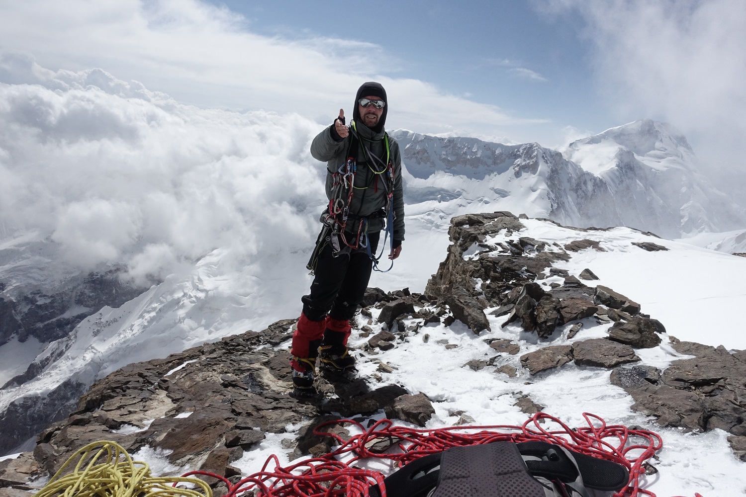 В принципе, через вершину было проще. Мы знали, что хотим пройти через вершину, потому что там более простой спуск. Иначе, с южной стороны, спускаться на перевал было бы тяжеловато. Он день полежал. На следующее утро проснулись, стали собираться, он сказал, что готов, что полезем до верха.