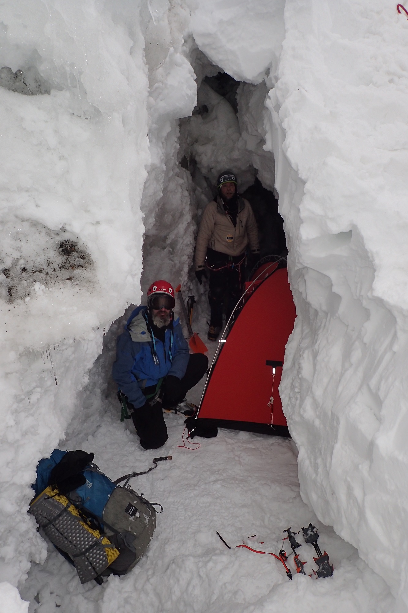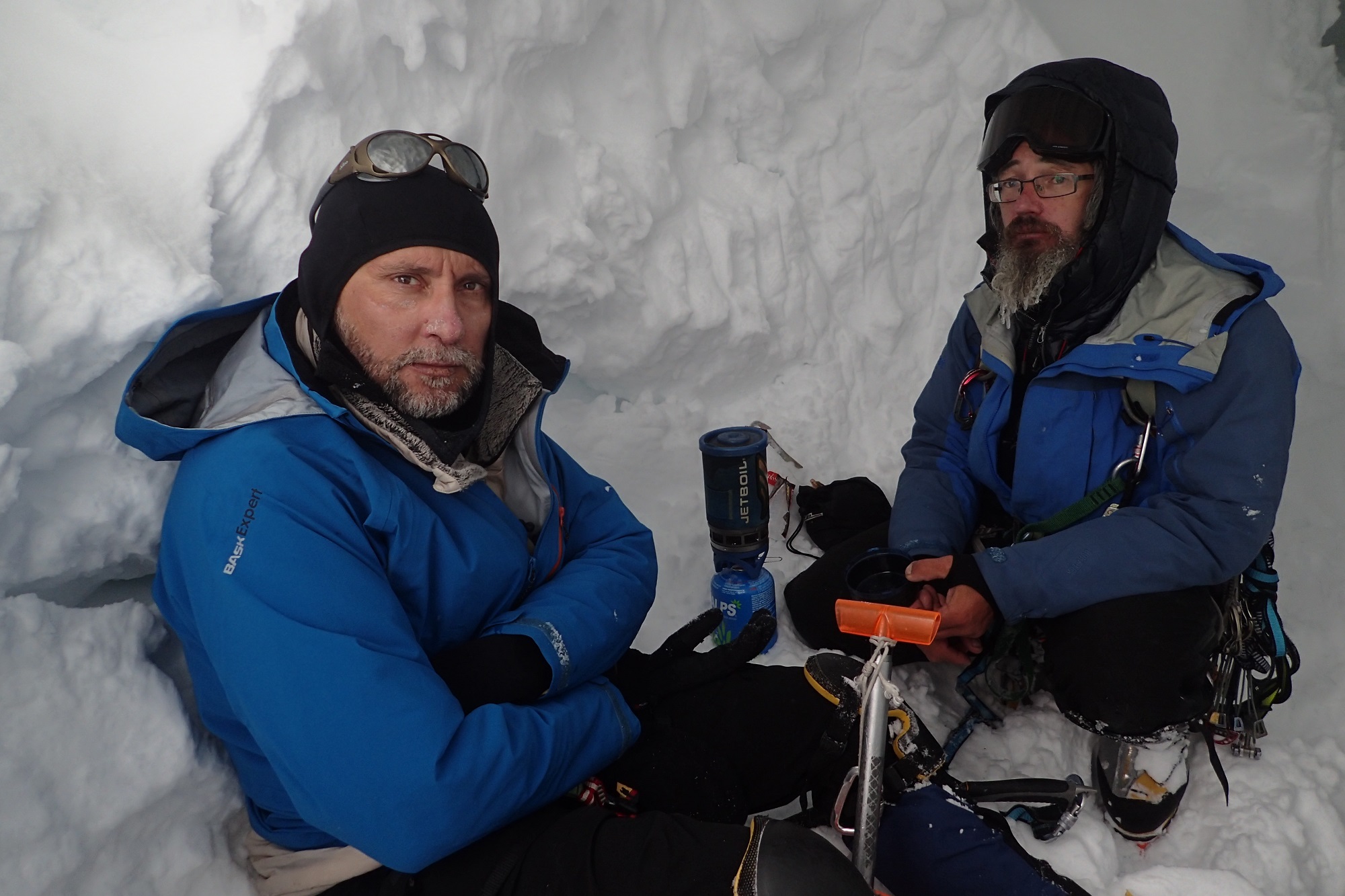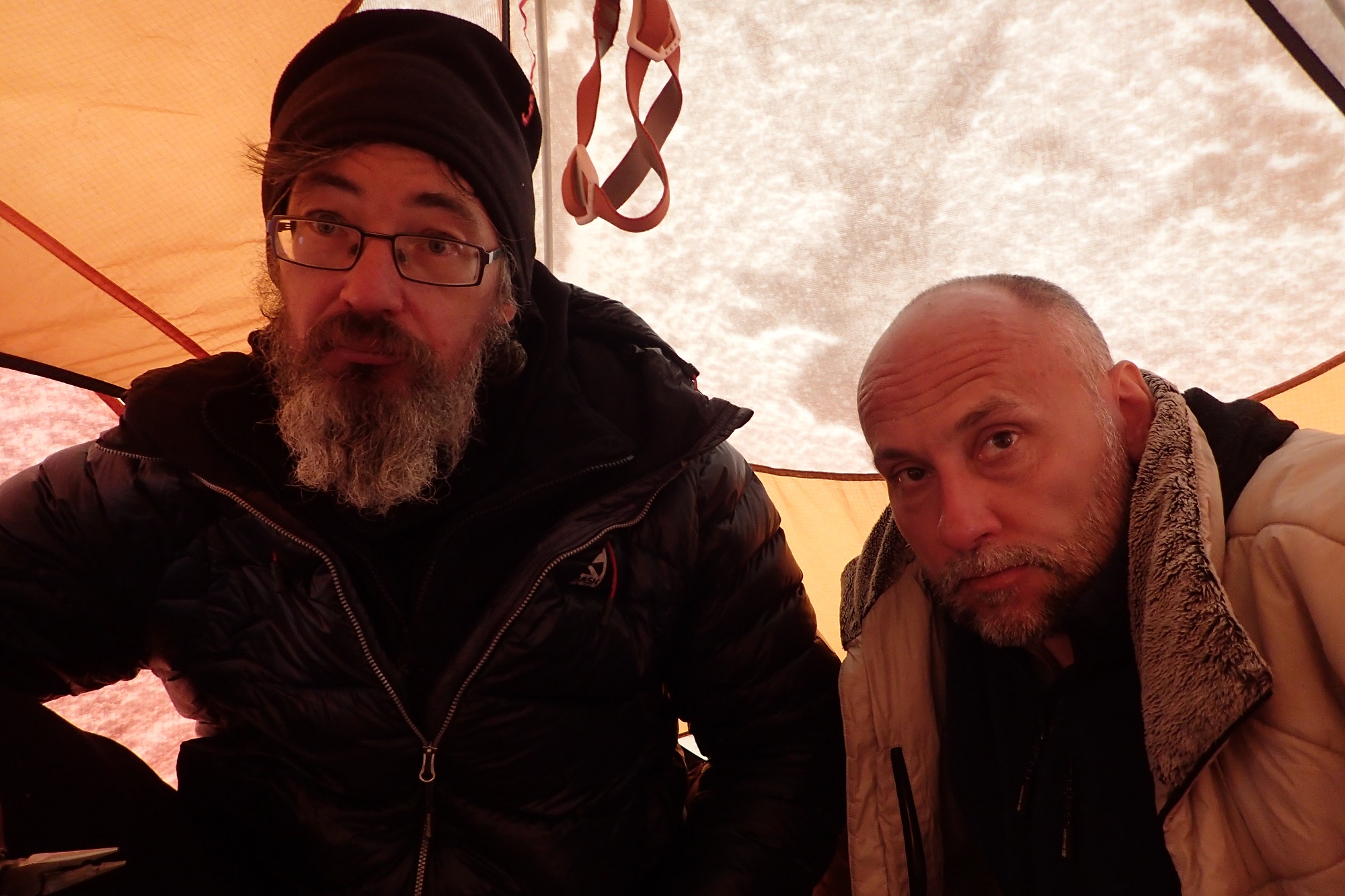 Хорошая погода тоже была. Пара дней – прямо супер хорошая, практически безветренная. А были дни, когда валил снег, который задувался и закручивался. Было впечатление, как будто он – отовсюду – снизу, сверху, и спрятаться особо негде. В эти дни мы старались заночевать в берге.