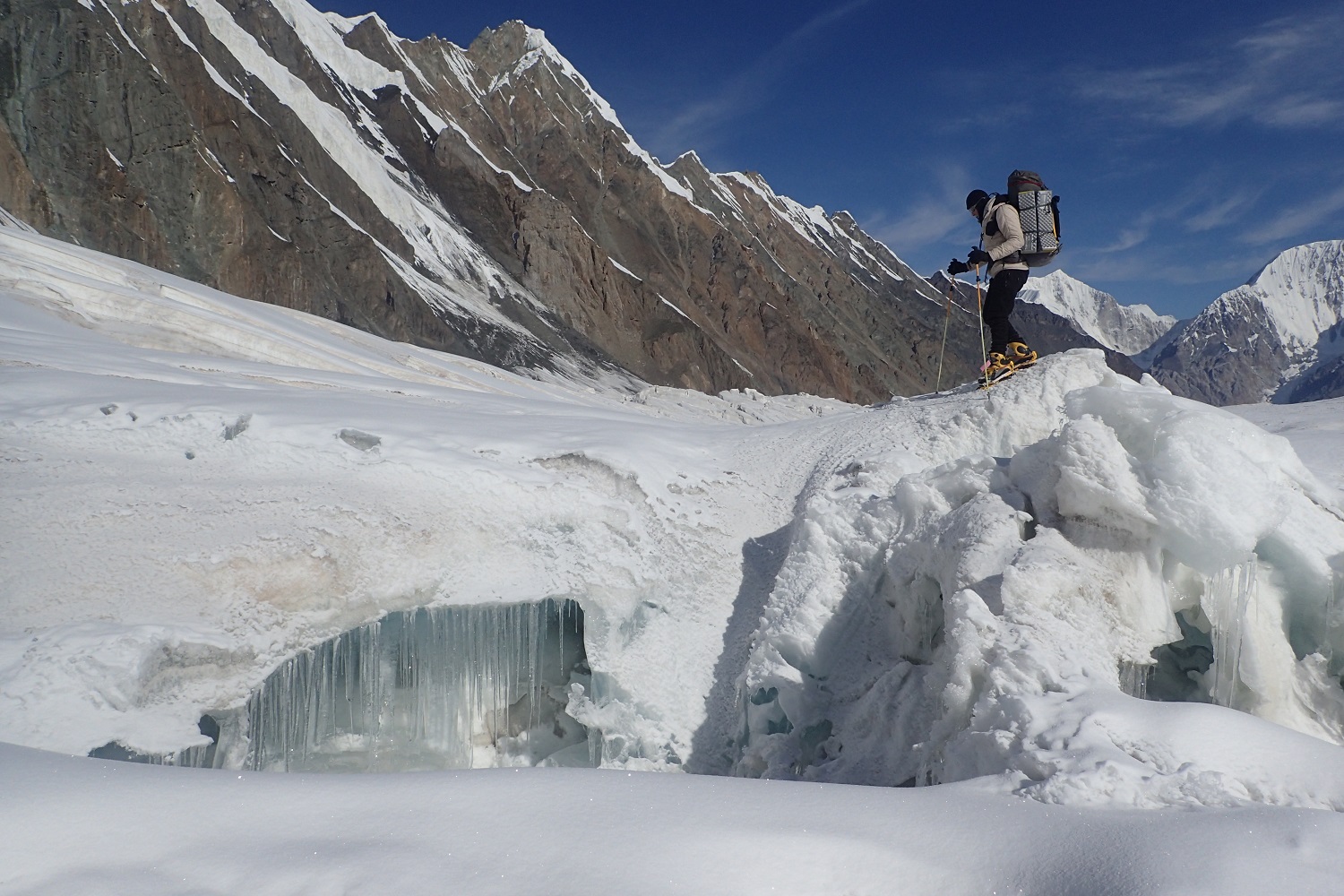 Нет, изначально мы думали, что будем стену лезть. Но когда пришли, то увидели, что высота такая большая, и масштабы вполне себе гималайские. Мы готовились к другому, у нас было скальное снаряжение на стенное восхождение. Мы так ходили на Талай Сагар, без платформы. Мы были в том же составе и решили, что если уж там как-то разобрались, то и здесь справимся. У нас собой был большой мешок снаряжения для прохождения именно скального маршрута.