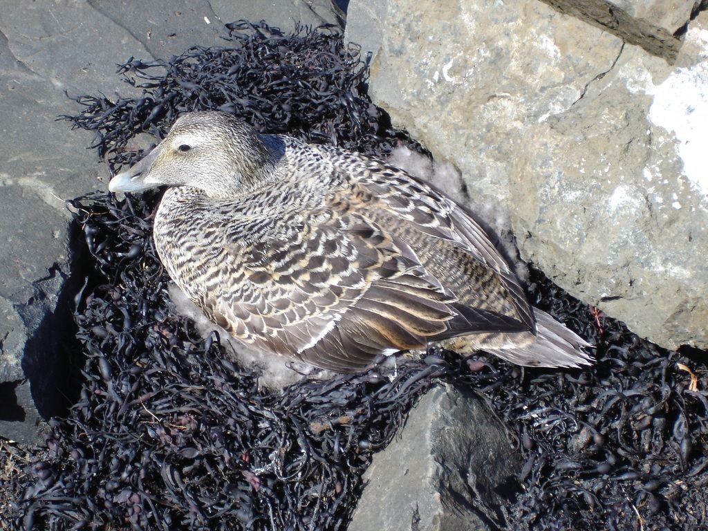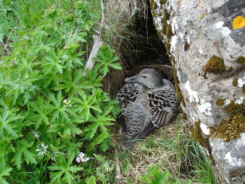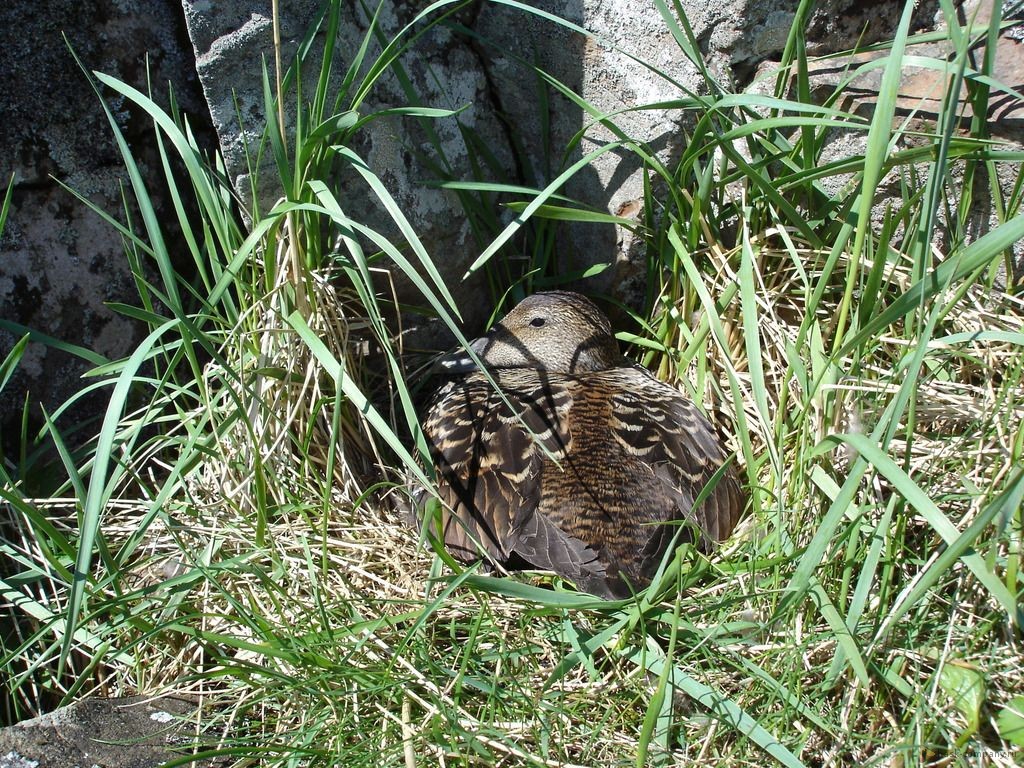 Каждый год в июне взрослые гаги (Somateria Mollissima) выходят из океана на берег, чтобы свить гнёзда и отложить яйца, а затем с вылупившимися птенцами они возвращаются обратно в море.