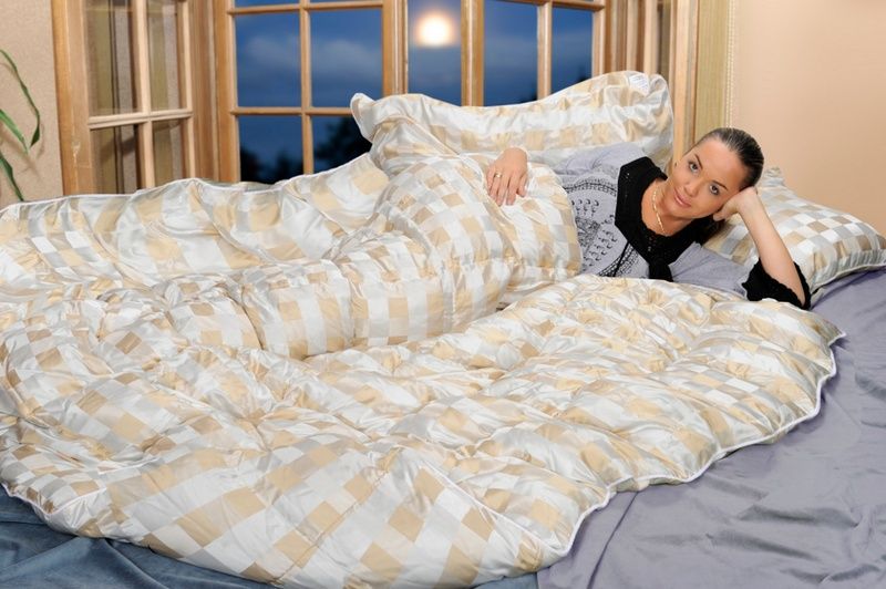 Гагачий пух лучше всех других материалов поддерживает комфортную температуру и влажность. Одеяла на гагачьем пуху хорошо согревают и позволяют влаге беспрепятственно выходить в окружающую среду. Под одеялом на гагачьем пуху вы не вспотеете, оно не затруднит ваше дыхание своим весом – такое одеяло подарит вам хороший сон. А что ещё нужно для хорошего отдыха.