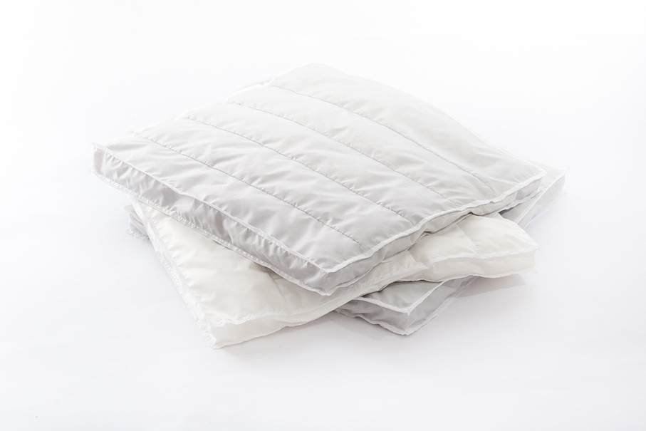 В нашей лаборатории был разработан метод измерения теплового сопротивления для плоских и выпуклых пакетов. Для эксперимента были изготовлены три образца пакетов, набитых гусиным пухом (F.P. 900), размером 60 на 60 см с различной шириной переборок: 6 см, 3,3 см, 2,8 см. Количество пуха в пакете было рассчитано таким образом, чтобы плотность пуха в единичном отсеке оставалась постоянной. В зависимости от ширины переборок пакет меняет форму от плоского — прямоугольного, до выпуклого.