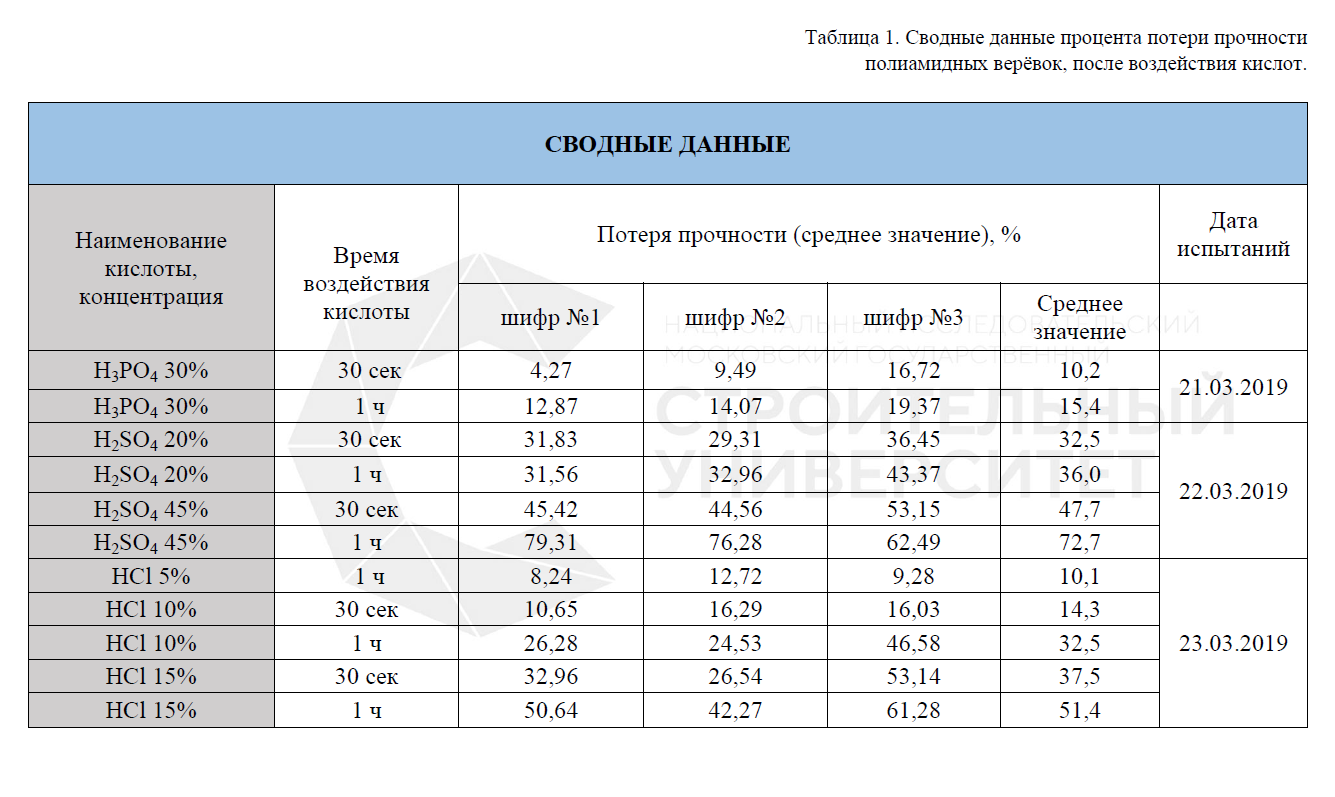 НЕГАТИВНОЕ ВОЗДЕЙСТВИЕ КИСЛОТ НА ПОЛИАМИДНЫЕ ВЕРЕВКИ