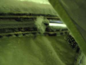 На фото видно, что следствием образования инея может быть обмерзание застёжки-молнии, которое способно препятствовать её нормальному функционированию. В данной палатке застёжка-молния находится в ставне вентиляционного окна и нарушения её функционирования не очень критично, однако это может быть критично для застёжек-молний на входах палатки. Поэтому для зимних палаток целесообразно входы выполнять в виде тубусов.