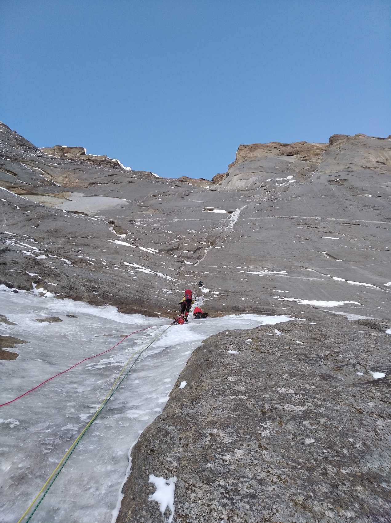 Чем скалолазание отличается от альпинизма? В горах мы совершаем огромное количество операций в голове, которые ты проводишь, пока лезешь. То есть лезешь со своими точками, анализируешь рельеф, собираешь страховочные станции, прокладываешь линию движения так, чтобы удачно проходила веревка, думаешь о том, как будут лезть твои напарники, выбираешь снаряжение под страховку. Множество нюансов на маршруте: были и чистые скалы, и чистый лед, и микст, и нужно думать, где закрутить бур, где перейти на лед или начать ИТОшить по скале. Эти все операции усложняют движение, но удовольствие ты получаешь больше.