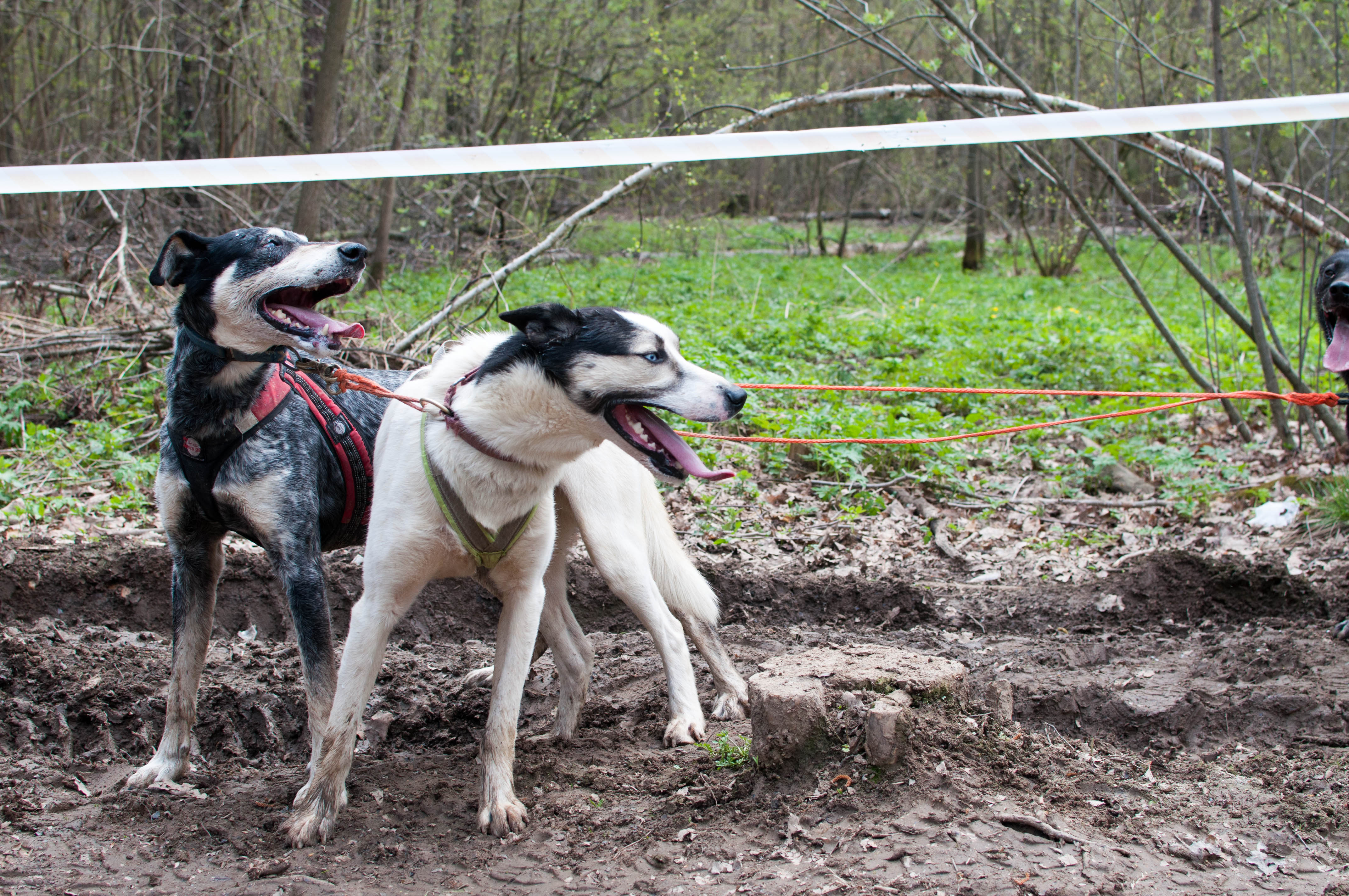 Вячеслав/ Если я начну сейчас раскладывать потяг, они начнут орать. Достаточно просто завести квадрик. Для них самое большое счастье пробежаться, не упахиваться, а просто пробежаться. Для моих, по крайней мере. Можно вкусняшку какую-то давать собакам, но мои не едят её на гонке, им надо бежать вперёд.