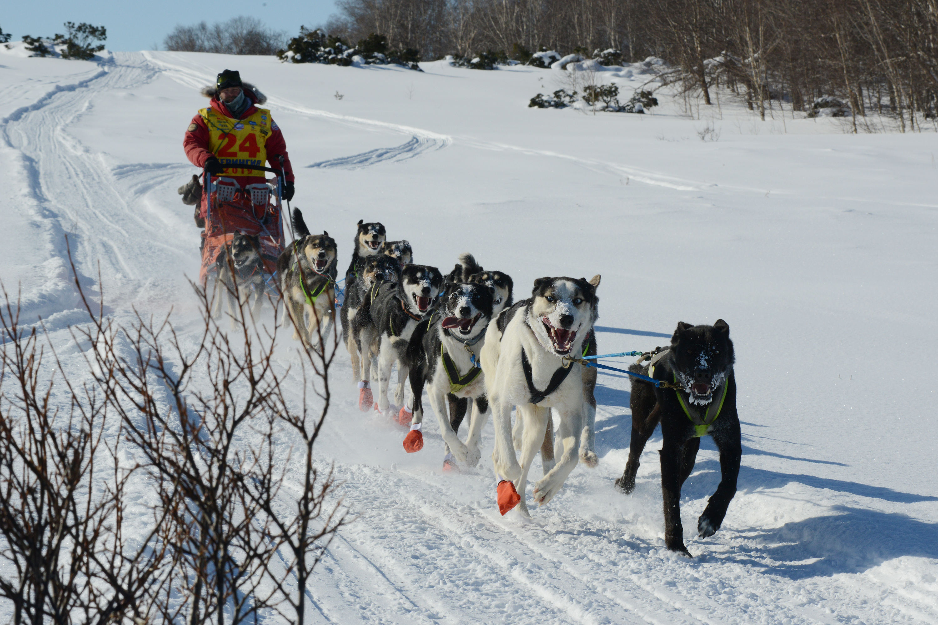 Вячеслав/ Да. Я хотел всей командой закончить. В прошлом году я снял четыре собаки. Не из-за травм, просто они не успевали по скорости. Были совсем молодые. Когда собаки шпарят всё время на лидерских позициях — это круто. Если каюр начинает снимать собак с самого начала гонок, то сразу понятно — собаки не готовы.