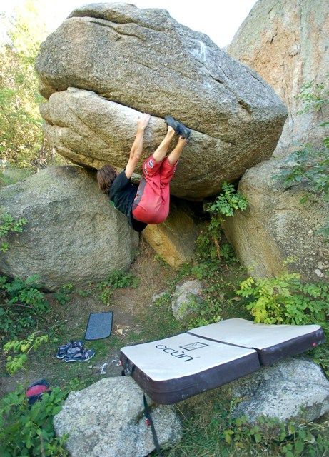 Hell – на севере Норвегии рядом с городом Тронхейм (Trondheim). Название района отражает суть: трассы 10 – 15 метров, короткие и мощные. Строение – конгламерат. Забавное лазание по нетипичному рельефу. В Скандинавии становилось все холоднее и дождливее – мы едем дальше. Freyr – самый большой скальный район Бельгии. Лазание по слабонависающим или вертикальным известнякам, местами сильно зализанным. Много техничных трасс. Fontainebleau (Фонтенбло) – самый большой, красивый и экзотичный боулдеринговый район Европы. Строение – песчаник. Есть все, что только может представить ваше скалолазное воображение. Слова бесполезны – это надо видеть! Targasonne – большой боулдеринговый район на границе Франции и Андорры. Высота – 1500 м над уровнем моря. Отличные погодные условия для боулдеринга даже летом. Любое лазание по крупнозернистым гранитам. Супер! Annot – относительно новый боулдеринговый район с огромным потенциалом. Уже сейчас количество проблем достигло нескольких тысяч. Строение – песчаник, но не однородный. Много дырок и грибообразных валунов. Высота от 700 до 1200 метров над уровнем моря. Можно лазить летом. Orpierre – самый домашний и уютный скальный район Франции. Есть все – от относительно длинных стен в 3-4 веревки и спортивных маршрутов 6-7-8 категории сложности до троек и четверок. Все маршруты подписаны и безопасно пробиты. Поэтому здесь всегда многолюдно и весело. Ardech – большой каньон, где есть все для активного отдыха. Есть и скалолазание. В октябре еще очень жарко, но можно отлично отдохнуть. Поездка была спланирована как тур по наиболее интересным европейским скалолазным районам, и мы не задерживались нигде дольше 3-4 дней. Поэтому не было времени наработать ничего сложного. В итоге за выезд я пролез более восьмидесяти боулдеринговых проблем от 6С до 7В. Максимальный результат на сложность: 8В - Orpierre, 7С on-sight там же. Отдельное спасибо нашим спонсорам OCUN, BEAL, ROCK PILLARS (официальный представитель в России - компания BASK) за предоставленное снаряжение, которое мы постоянно использовали в этом путешествии.