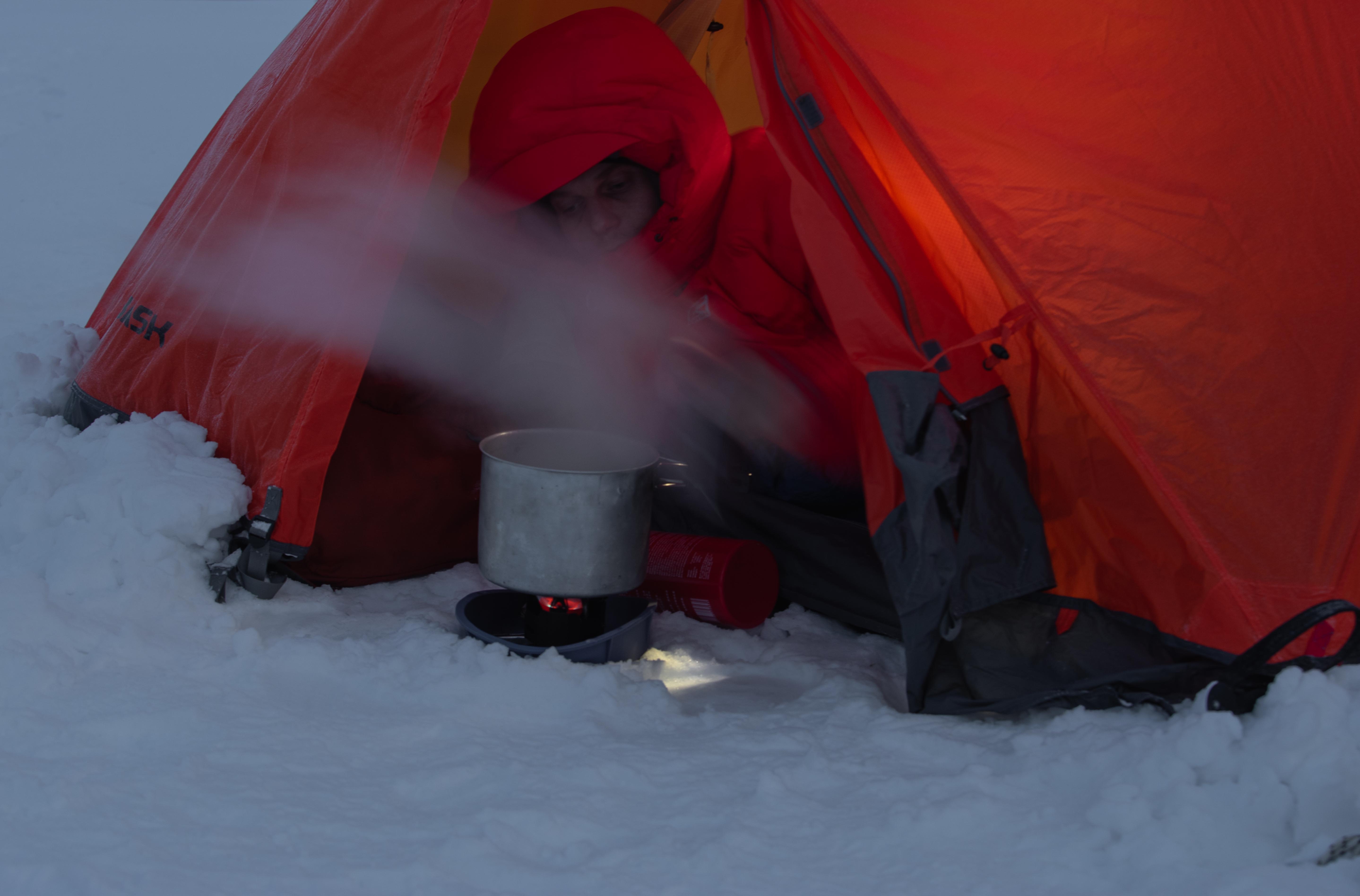 Для приготовления пищи использовали бензиновую горелку MSR XGK Expedition - это «рабочая лошадка» во всех наших походах.
