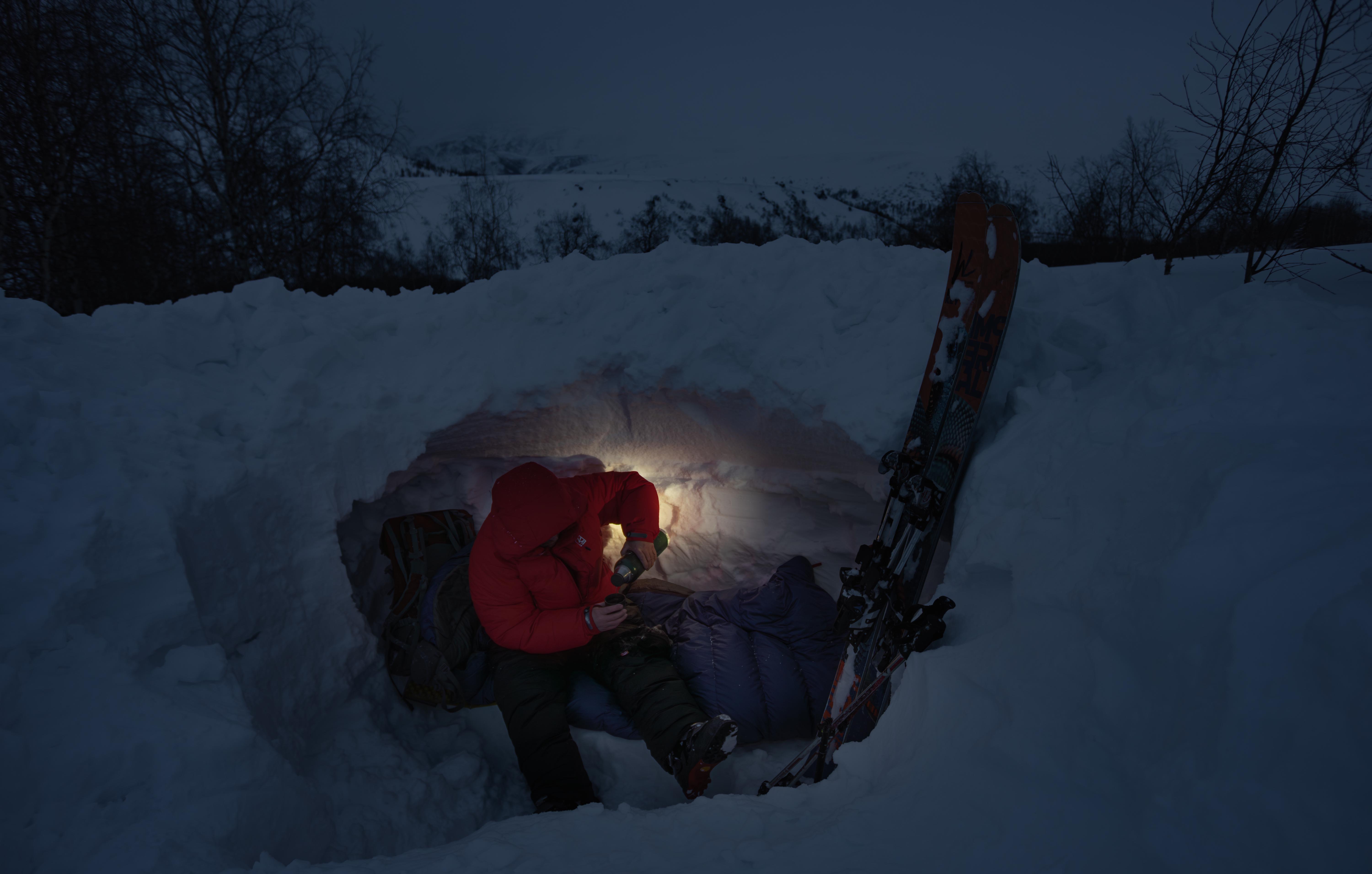 В течение двух недель, что были на маршруте, спальник показал себя отлично. Для чистоты эксперимента не использовал конденсатник (тонкий спальник с одним слоем синтетического утеплителя. Он нужен для того, чтобы отвести точку росы от основного спальника и принять на себя влагу. Надевается поверх основного спальника). Мой спальник после ночи, конечно, был немного влажным, но не критично. Достаточно было вывесить его на мороз и ветер, чтобы он быстро высыхал. В будущих походах я добавлю к нему конденсатник, что сильно повысит его эффективность. В ходе эксперимента выяснилось, что вполне можно использовать пуховые спальники в условиях арктического климата, что, несомненно, большой плюс, ибо разница в весе пухового и синтетического спальников, при тех же температурных характеристиках, будет весьма значительна. Так же еще одним очень важным моментом является ночевка в снежной пещере, где, как известно, влажность ОЧЕНЬ высока. На удивление, и тут спальник показал себя хорошо.