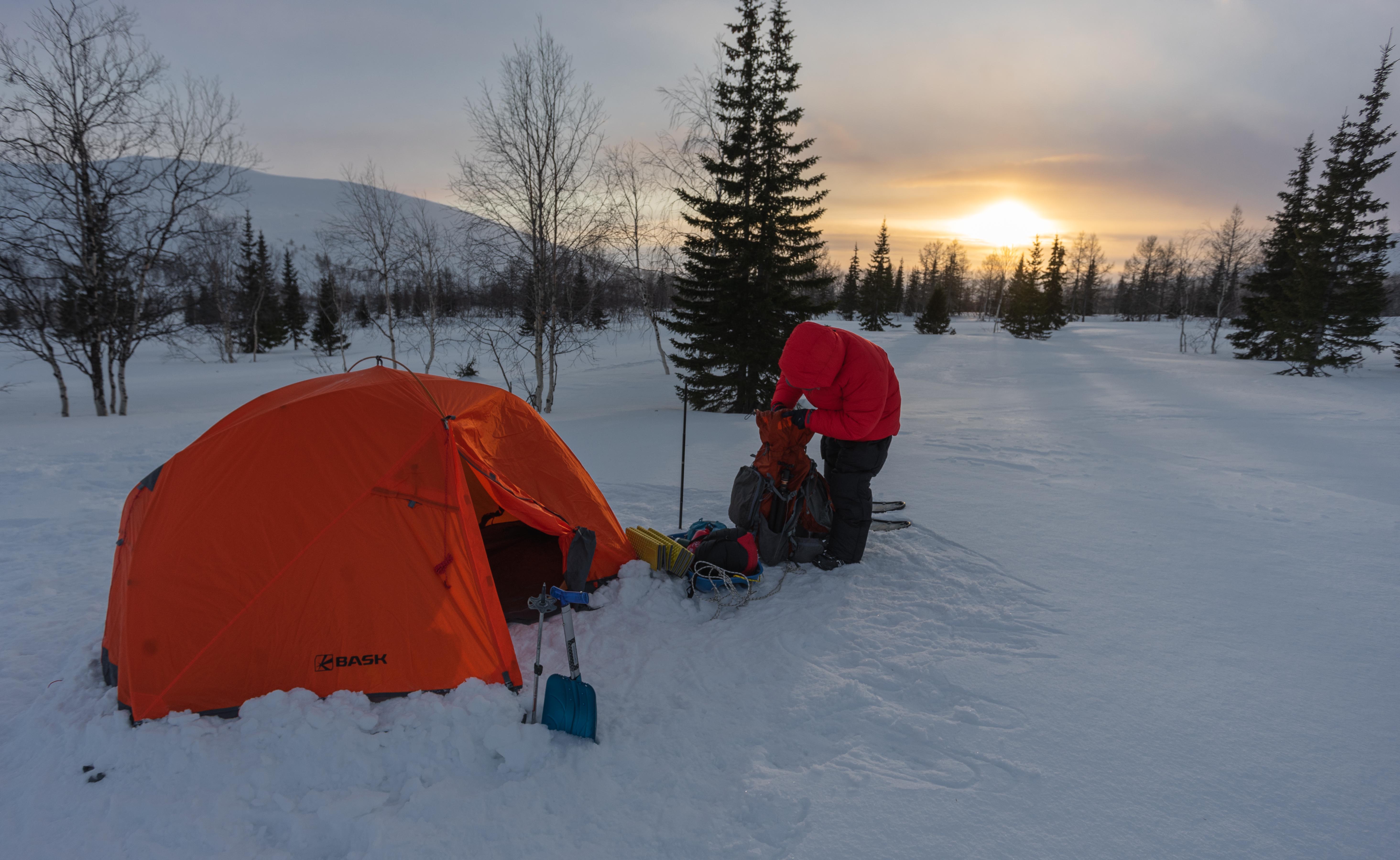 Были сомнения, что будет тесновато со всем снаряжением, но на деле оказалось вполне нормально. Из-за небольшого объема палатки в ней теплее, чем в более просторной.