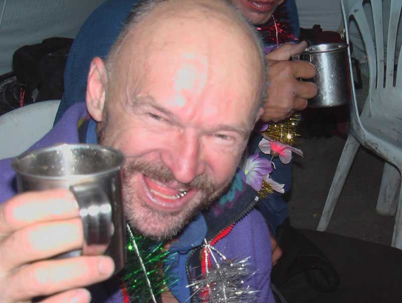 Запомнилась зимняя экспедиция на Кодар в 2001-м. В 50-градусный мороз мы отправились на заброску втроем: я, Володя и Сергей Федоров. Нам предстояло пройти 25 километров вниз по замерзшей реке, загрузиться продуктами и вернуться в базовый лагерь. По пути стояла палатка промежуточного лагеря, но мы собирались обернуться за день. Выходили затемно. У каждого санки, на лбу фонарик. Планировали взять груза килограмм по сорок. И вот, буквально минут через 20, Вова, который шел первым, проваливается под лед. Яма вообще-то не глубокая, примерно по пояс, но все равно неприятно. Все произошло так внезапно, что пока мы с Серегой подбежали, Архипов уже выскочил на лед. Ну что ж, делать нечего, надо поворачивать назад. "Фигня", - сказал Вовка, - "я даже не успел промокнуть, пошли дальше". И мы продолжили путь. Снаружи Володя покрылся ледяной корочкой и захрустел. Но так как темп движения был очень высокий, совсем скоро от него повалил пар. А к обеду, когда мы спустились к заброске, Архипов уже просох. Мороз крепчал. Бензин разгорался с трудом. Кое-как развели костер. Пока в чайнике варились куриные лапки, мы пытались отогреться, но это не удавалось. Повернешься к огню лицом - спина мерзнет, повернешься спиной - морда отмерзает. Так и бегали вокруг костра, размахивая руками и ногами. Отдохнув, загрузили сани провиантом и двинули в обратный путь. На этот раз никто не провалился, и к ужину мы были в избушке базового лагеря.
