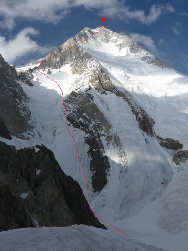 Всё прошло так, как и планировалось: 17 июля в четыре часа утра выход, тяжелый подъем по глубокому снегу на перемычку 7800 метров, и далее – по гребню к вершине.