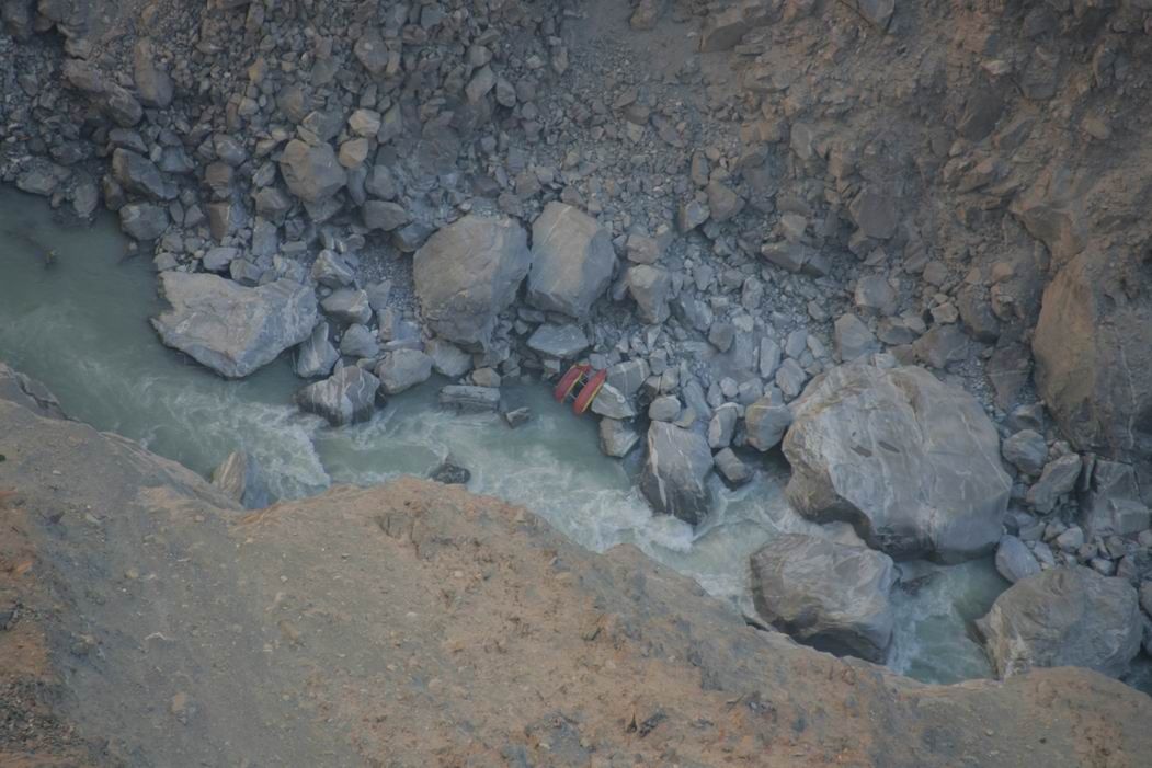 Сегодня два российских представителя МЧС приняли участие в полете на китайском вертолете к месту, где были обнаружены катамараны. Катамараны удалось заснять (см. 3 фото выше). Следует иметь в виду, что это утренние фотографии, а на реке наблюдаются большие суточные колебания воды. В районе местонахождения четверки найдена площадка, вроде бы пригодная для посадки вертолета. Попытка сесть на эту площадку, возможно, состоится завтра. Вертолет МИ-17МТВ. На использование российского вертолета китайцы добро пока не дали. Катамараны лежат примерно в 13 км друг от друга. Четверка находится выше по течению на южном (левом) берегу и разобрана. На прилагаемой карте это примерно посредине между отметками 3400 и 3500. Двойка лежит на северном берегу примерно посредине между отметками 3200 и 3300. Выше двойки глухой каньон со сложным порогом.