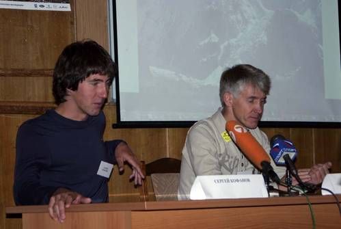 Подготовку пресс-конференции пришлось «уложить» в весьма сжатые сроки, поскольку Сергей прилетел в Москву 8, а Валера – 9 ноября, причем даты прилета, как это обычно бывает после больших экспедиций, оставались неопределенными. Тем не менее, были впечатления, были слайды, были журналисты («Спорт-Экспресс», «Вертикальный Мир», «Вольный Ветер», «Московская Правда», «Фактор Риска») и 2 съемочные группы – от телеканалов «Спорт» и «7ТВ».