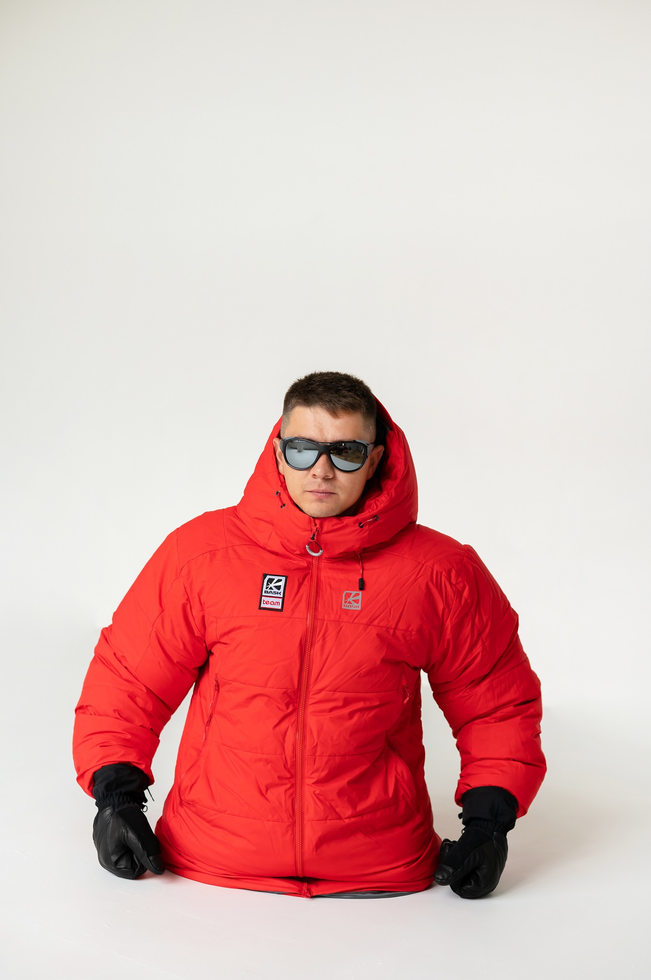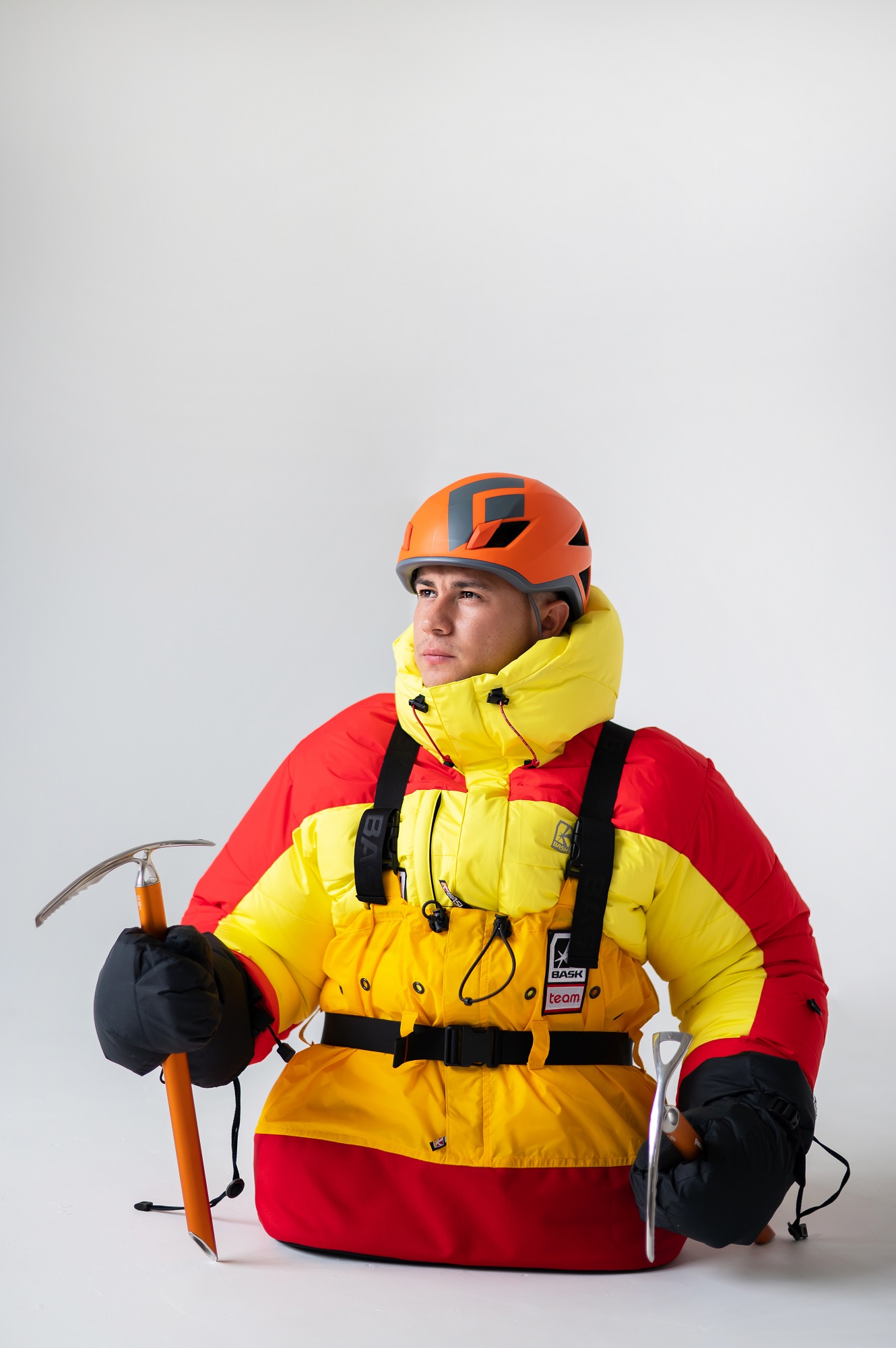 Одежда в альпинизме это – не только про удобство, но и про безопасность! Большой риск переохлаждения/обморожения мог быть у Рустама, – он постоянно соприкасался с холодной поверхностью. Для него наши друзья – компания BASK, – разработали не только индивидуальные пуховые комплекты одежды, но и специальный «кокон», который защищал от промокания основных слоев одежды.