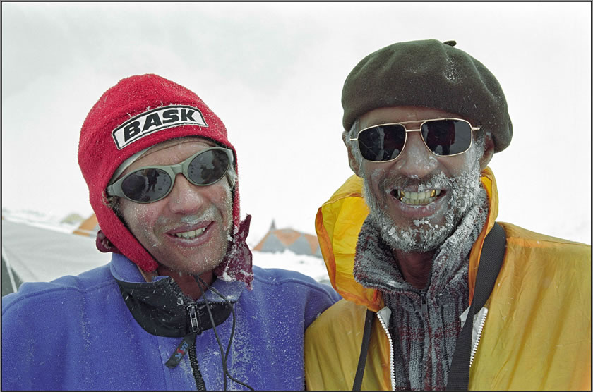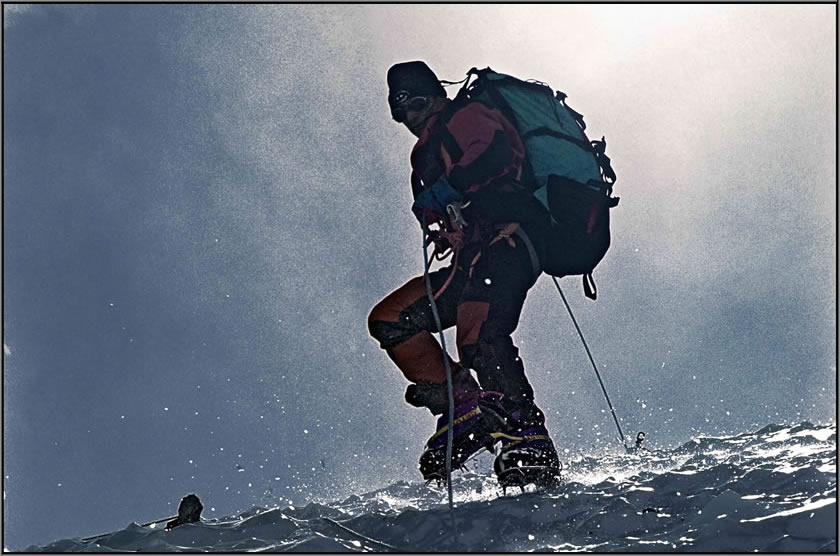 С мембраной на холоде бывают неприятности, иногда она покрывается инеем изнутри. Это происходит из-за сильного потоотделения: влага не успевает уйти и конденсируется на внутренней стороне мембраны. Но на высоте, когда ты акклиматизирован, то почти не потеешь. И воздух сухой. Там практически нет такой проблемы.