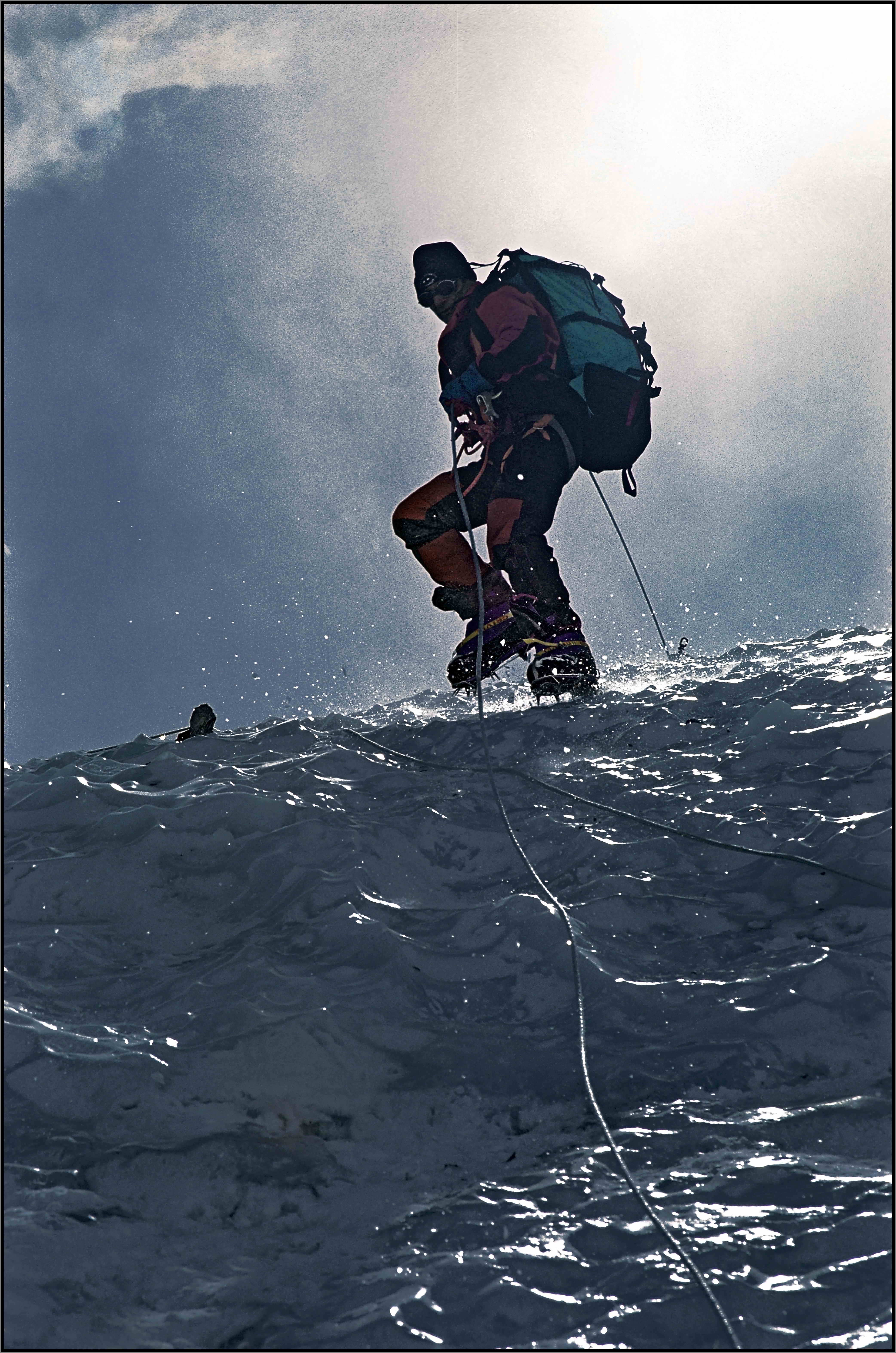 С мембраной на холоде бывают неприятности, иногда она покрывается инеем изнутри. Это происходит из-за сильного потоотделения: влага не успевает уйти и конденсируется на внутренней стороне мембраны. Но на высоте, когда ты акклиматизирован, то почти не потеешь. И воздух сухой. Там практически нет такой проблемы.