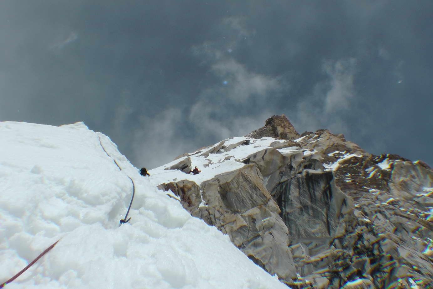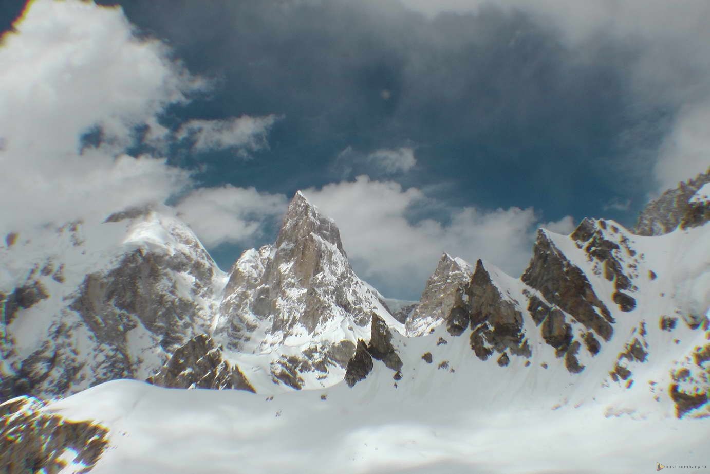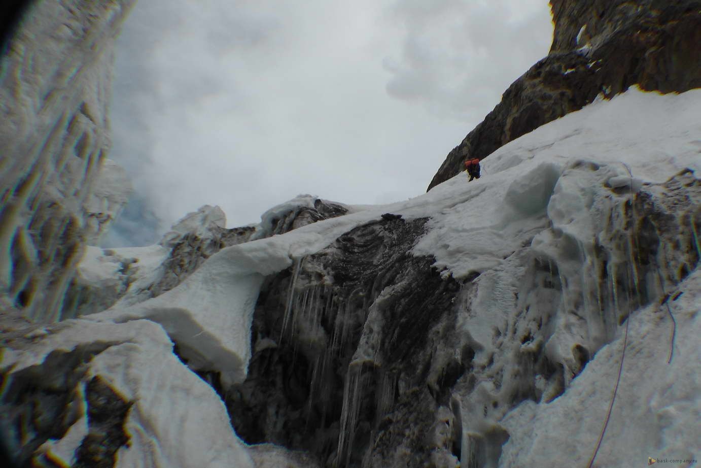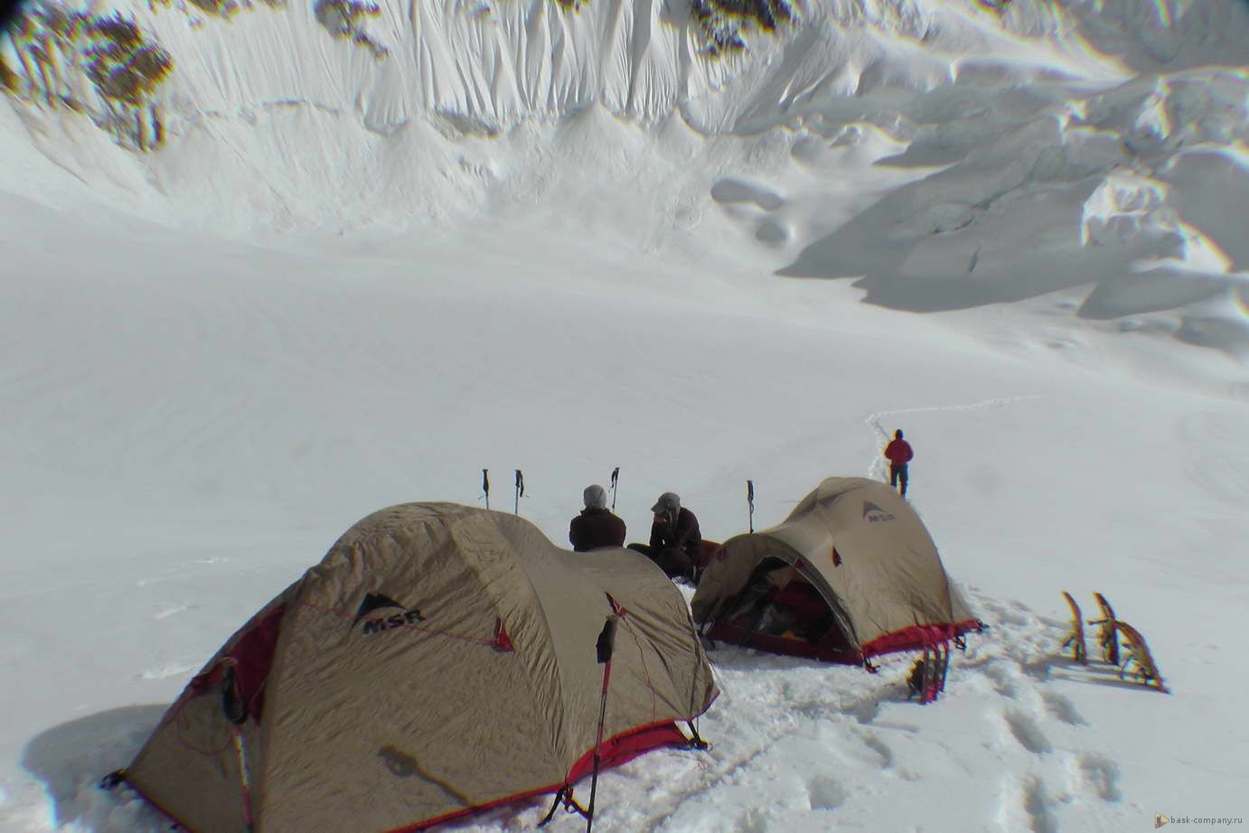 В базовом лагере снег, много.