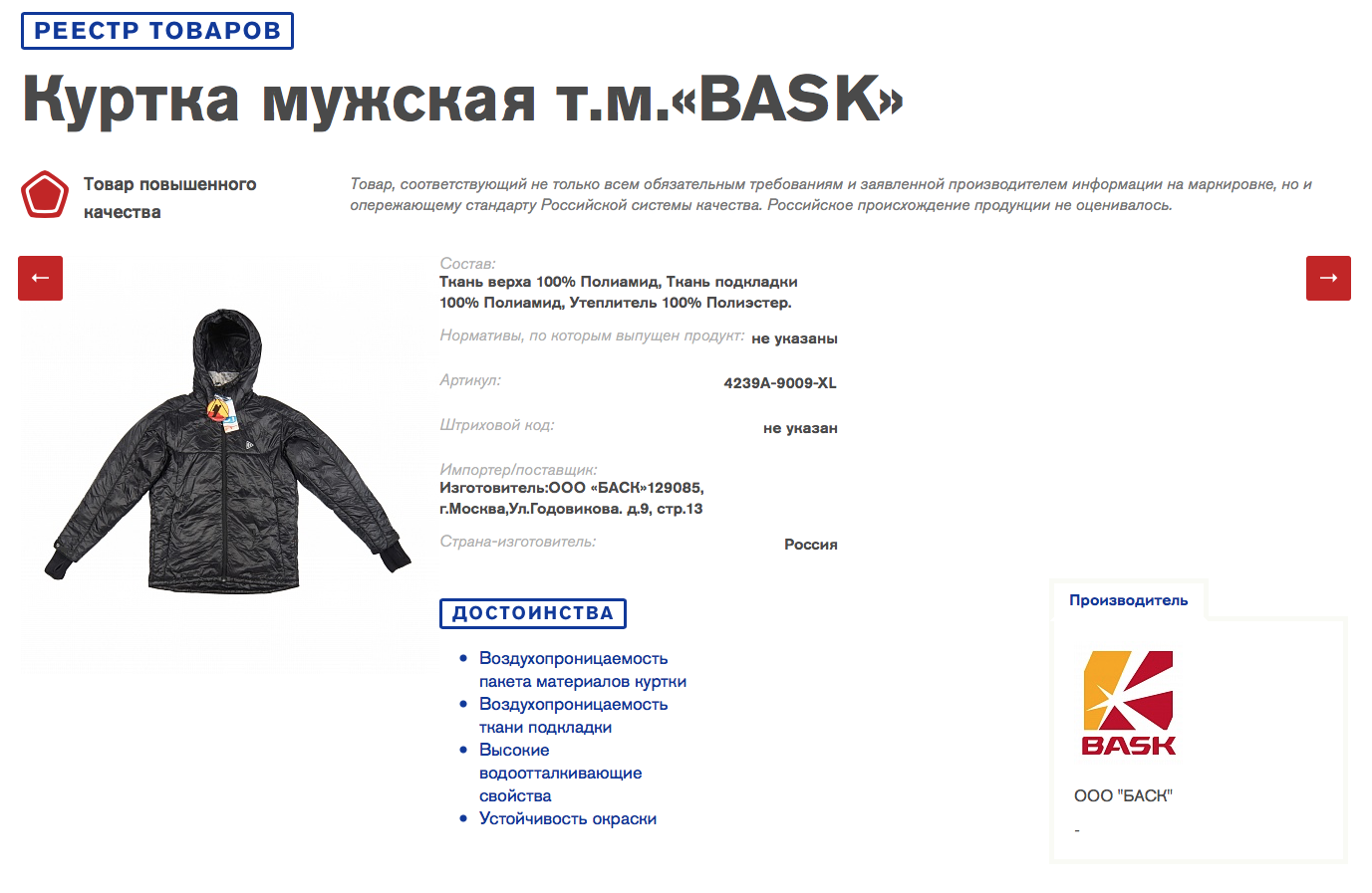 БАСК в реестре товаров повышенного качества от «Роскачества».