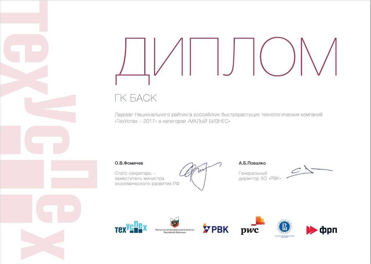 В 2017 году компания БАСК вошла в число лауреатов рейтинга «ТехУспех-2017» в категории малые предприятия. Национальный рейтинг российских высокотехнологичных быстроразвивающихся компаний составляет РВК в партнерстве с PwC, Ассоциацией инновационных регионов России и Национальным исследовательским университетом «Высшая школа экономики».