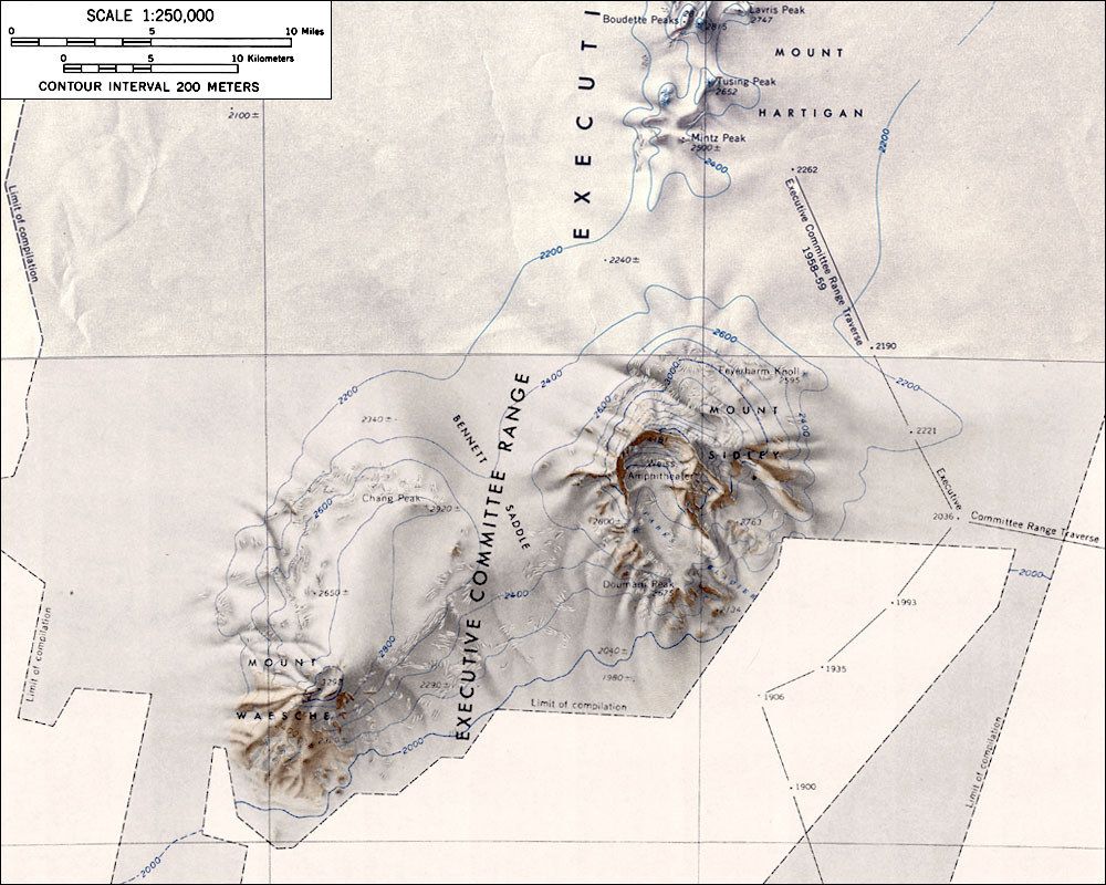 Сидлей - это гигантский вулканический массив, огромной выпуклостью возвышающийся над однообразной ледниковой поверхностью окружающей территории. Одна сторона горы образует огромную кальдеру кратера диаметром в 5 км, его стены возвышаются примерно на километровую высоту. И там возможно проложить сложные альпинистские маршруты. С другой стороны склон исключительно пологий и путь к вершине может быть пройден на лыжах. Впрочем, вопрос с высшей точкой остается не до конца ясным. Их может быть несколько. И может быть, ее надо будет еще отыскать в длинном гребне, определить высоту по GPS, убедиться, что кто-то там уже был. Так что нам предстоит полноценное восхождение с элементами исследования, так как предшественники качественного отчета не предоставили.