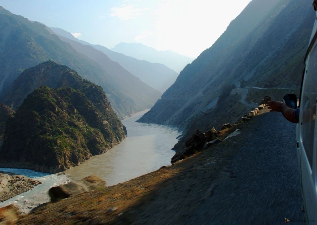 Настоящая горная дорога по крутым обрывам, вот кажется, сейчас наш автобус сорвется в пропасть. Ближе к вечеру выехали в долину реки Инд, где и остановились в одной из гостиниц.