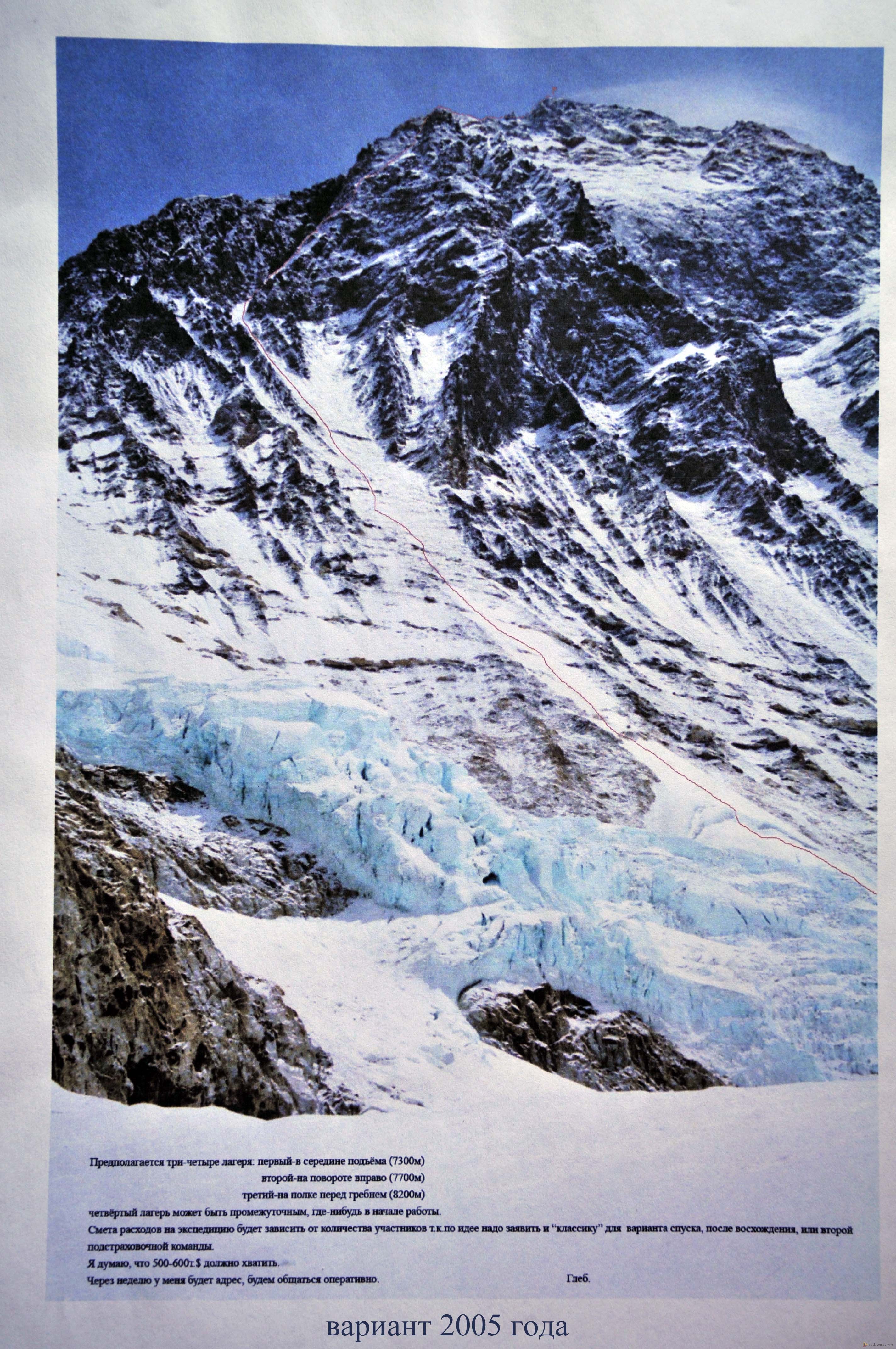 В апреле-июне этого года я и Александр Кириков планируем новый маршрут на Эверест по восточной стене в альпийском стиле без кислорода (фото 1). Готовиться к восхождению мы будем в замечательной компании альпинистов ''7 Вершин''. Взойдём на Чангцзе (7550м), побродим по "северной классике". После акклиматизации переедем на ледник Канчунг, откуда и планируем восхождение. Спуск на север.