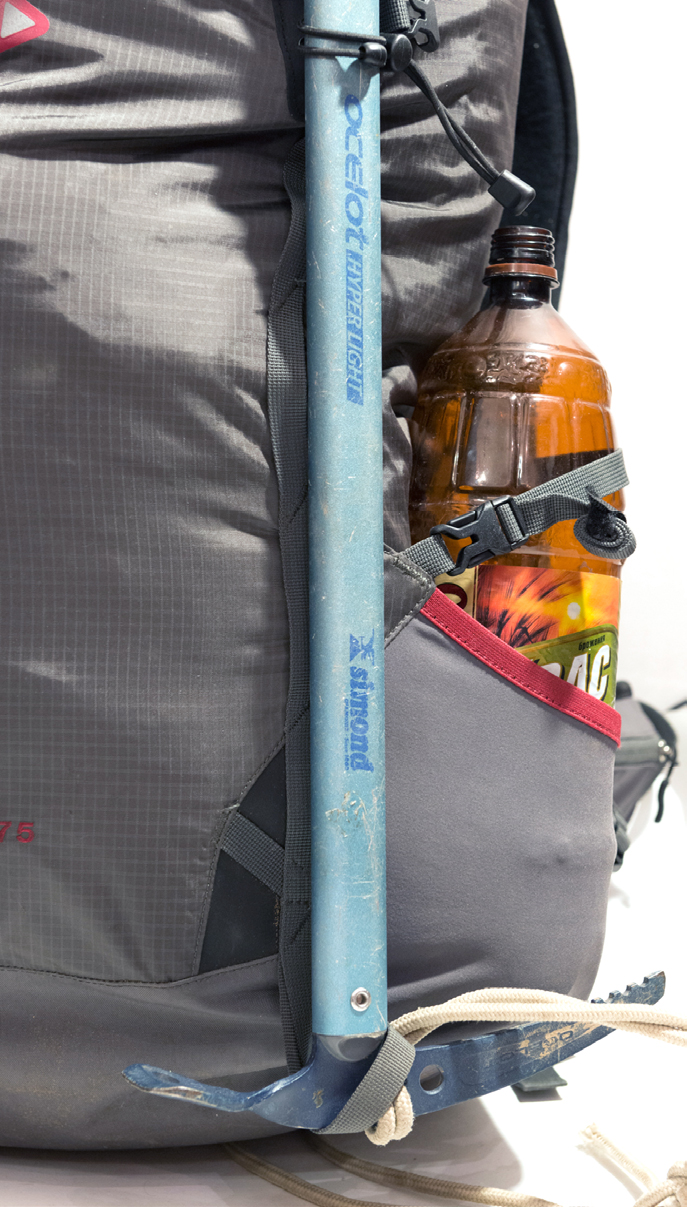 На рюкзаке также расположены специальные петли для закрепления ледоруба, ледового инструмента или треккинговых палок.