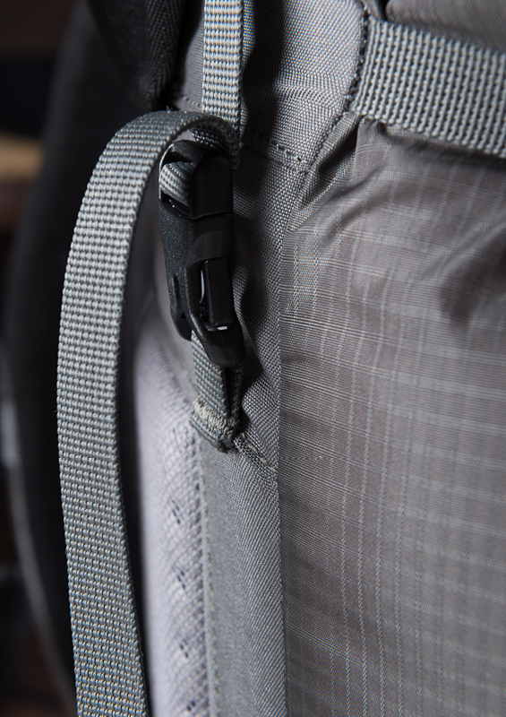 Несмотря на кажущуюся легкость лямок, они прочно закреплены к рюкзаку тройными швами, а в местах напряжения сделано усиление из Hypalon. Низ рюкзака выполнен из более прочной ткани..