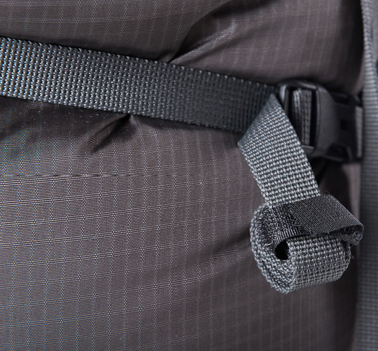 Обратите внимание на то, как можно использовать липучки на боковых стяжках: такое использование липучек удобно на природе, когда приходится часто утягивать рюкзак. Липучки можно использовать и по прямому своему назначению: для того, чтобы длинные стропы не болтались их можно укоротить. Боковые ремни очень длинные – это позволяет свободно регулировать навеску на рюкзак.