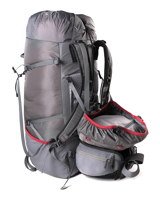 Рюкзак состоит из основного отделения с лямками, съемного пояса, клапана и дополнительного коврика, придающего вертикальную жесткость рюкзаку. Коврик может использоваться как сидушка или служить теплоизоляцией в палатке. В съемном клапане расположены два кармана: один из них потайной – для документов и денег. Съемный клапан может использоваться как маленький рюкзак – у него даже есть для этого свои лямки.