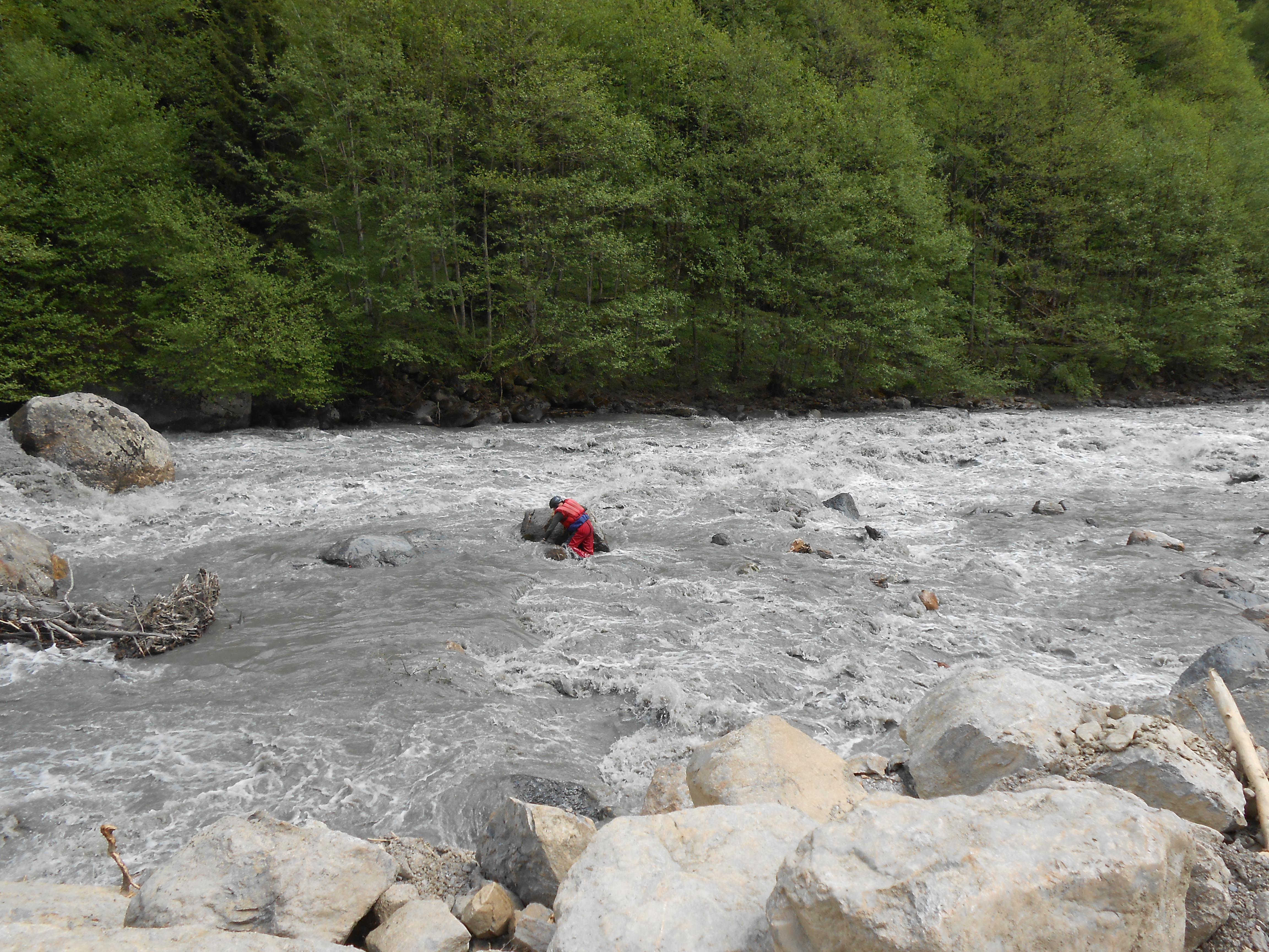 Конечно, были карты и лоция, но на заброске сравнение описанного в лоции с видимым в реке, даже с применением двух GPS-ов и трека из лоции ничего не дало – мы приехали на ДРУГУЮ реку. Мы не ошиблись ущельем, не распечатали другую лоцию, были в здравом уме и трезвой памяти… просто вода была … другая.