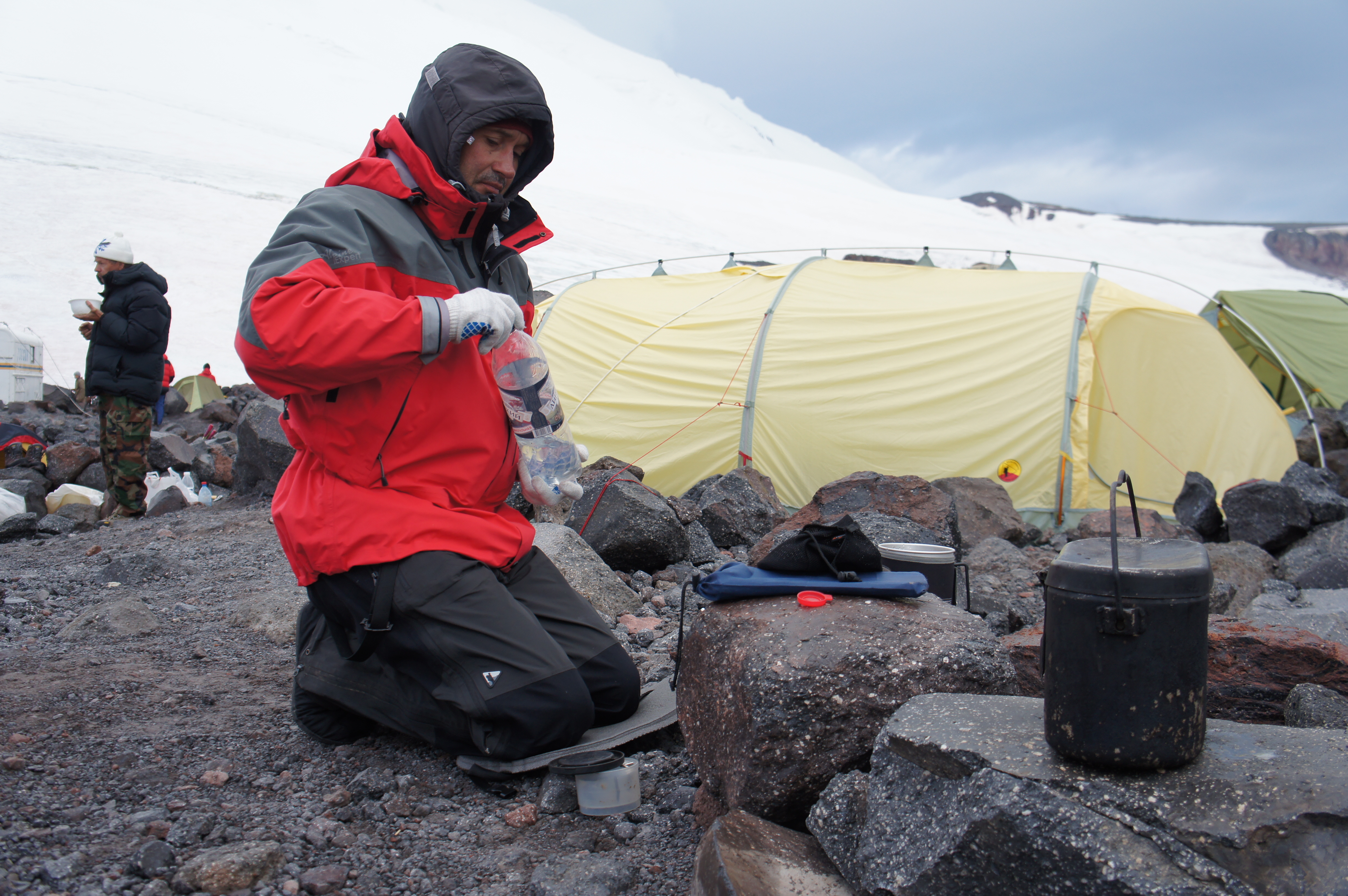 На 3-ий день закинули заброску на высоту 3700м (Северный приют) и вернулись ночевать на базу. На следующий день поднялись со всем грузом на Северный приют, поставили лагерь и на акклиматизационный выход дошли до скал Ленца. Велоколепный вид открывался несмотря на облака, судя по которым, внизу шел дождь. Итак, 2 дня мы посвятили походам по скалам Ленца и по местным лагерям. Узнав от спасателей, что погода налаживается всего на 2 дня, мы решились на восхождение.