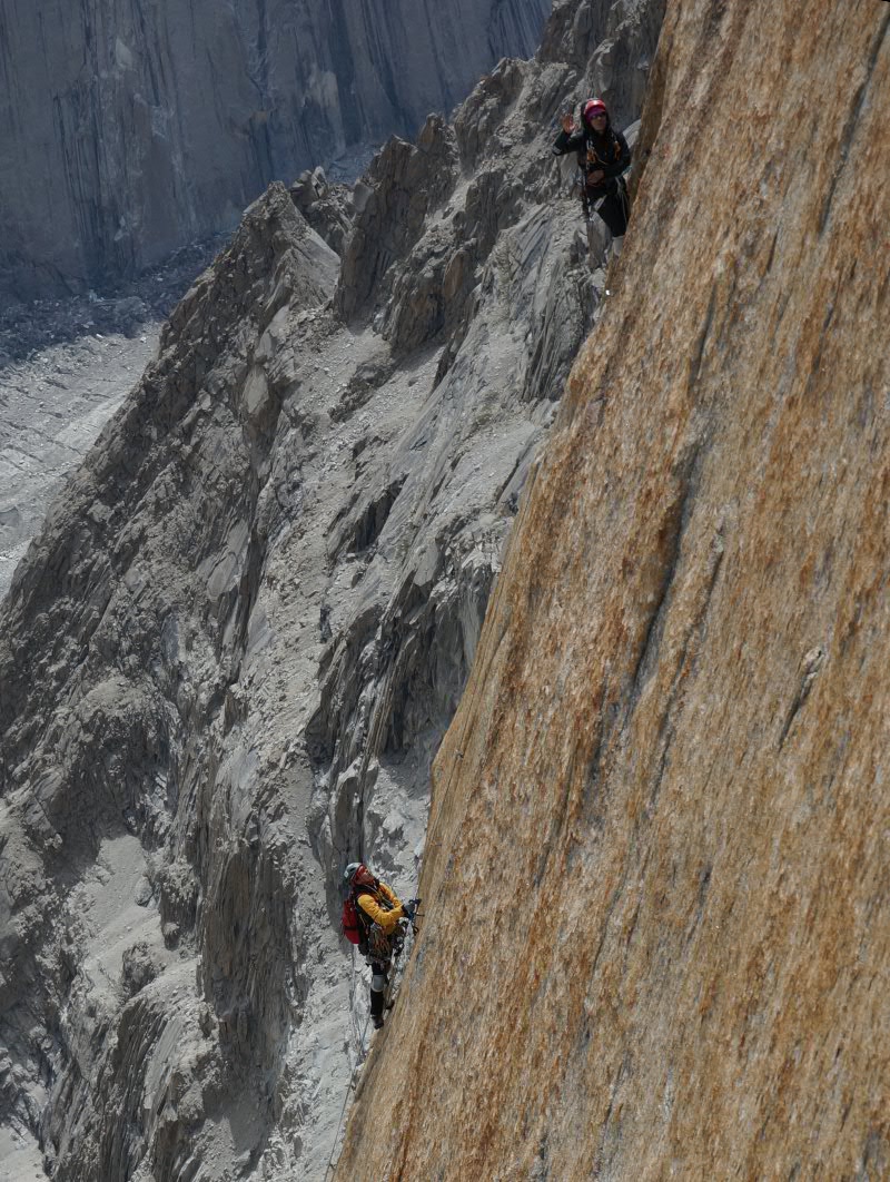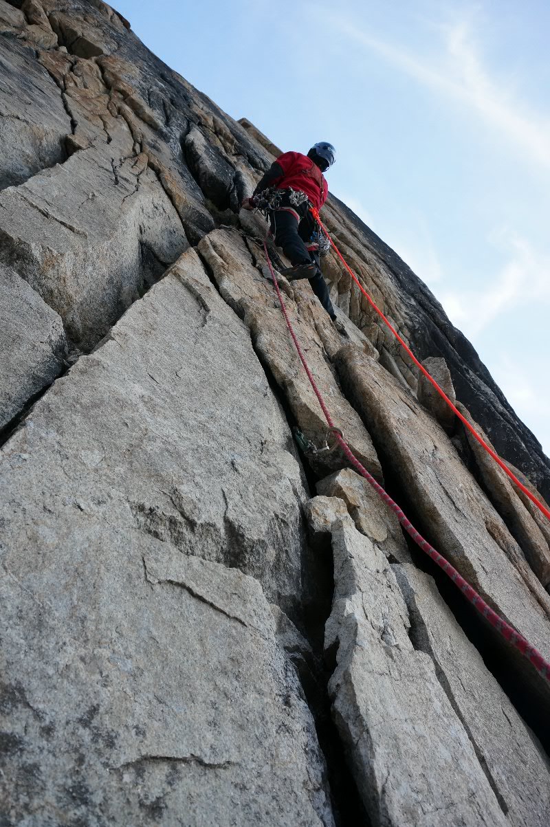 Если не вдаваться в подробности, то его суть состояла в следующем: попытаться залезть максимально быстро, желательно свободным лазанием. Чтобы быстро двигаться облегчаемся: не берём ИТОшную снарягу, большой камалот№5. Берём один спальник на двоих.