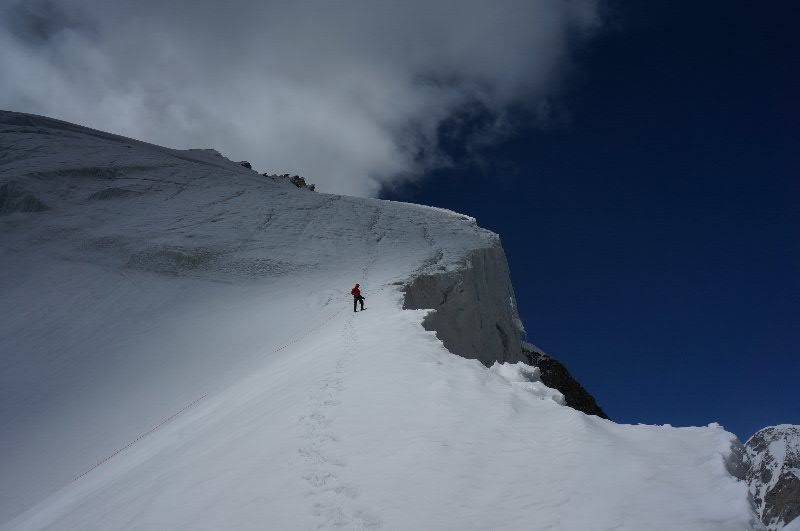 Кажется, что на 6000 метрах, практически у самой вершины, прохождение карниза это какой то unreal и логика подсказывает, что надо искать обход, но станции в камине говорят об обратном. Камин пролазим проще, чем предполагали, а карниз даётся нелегко.