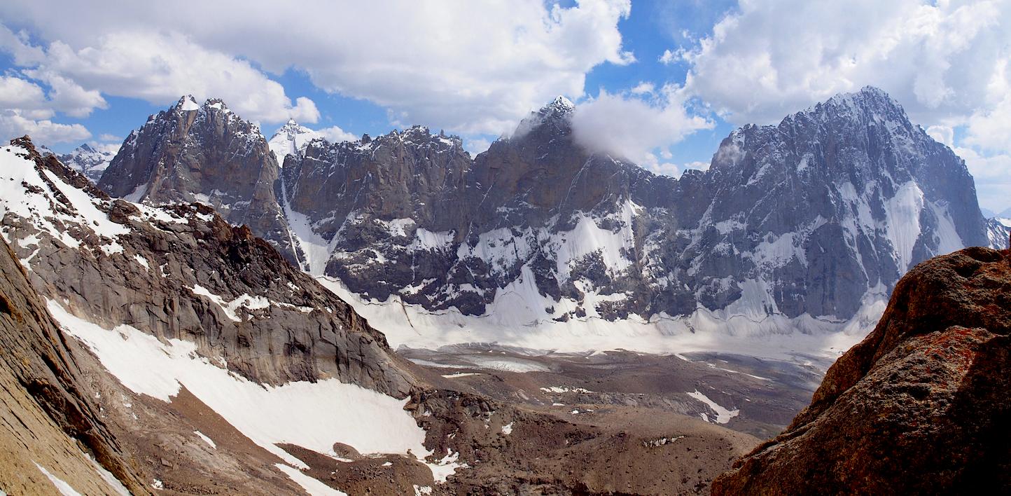 Южные стены массива Парус, северные стены Близнецов, Стоунхэджа, пика Ашат и высшей точки района вершины Сабах!!! 5300 м.