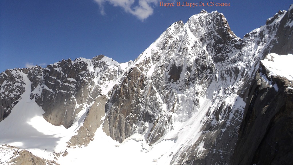 На фоне неба С. гребень 4а Корсуна. Непройденная СЗ стена на Парус Гл. и СЗ бастион на Парус В.