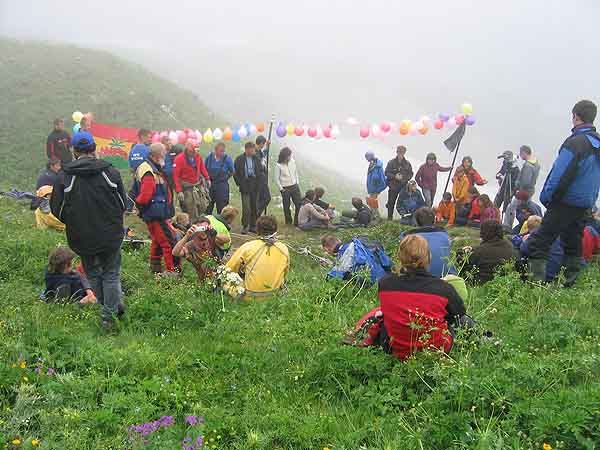 Посидев полдня на пупыре, который мы называем "телефонная будка", Гоша Сапожников сумел соединиться с интернетом. Все таки как нашу спелеообщественость волнуют всякие "жареные" события: то там француз рухнул при навеске глубокого колодца, то в Крубера ЧП. Все сразу забеспокоились, записали, примерно также как и официальные СМИ, путая и нагнетая истерию. Не волнуйтесь: родственники, близкие, и друзья потерпевшего были все время в курсе, а те, кто действительно волновался и переживал, передавали перфораторы, собирали снаряжение и покупали билеты на самолет.