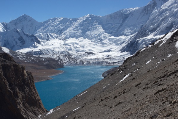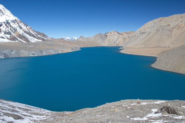 Озеро Тиличо 4900м. Вид с юго-запада, на заднем плане перевал Мезоканто, еще дальше Дхаулагири 8167м