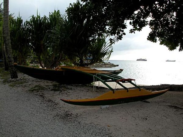 Каноэ посвящён отдельный раздел экспозиции. Есть модели, описание конструкций, теоретический чертёж корпуса, информация из каких пород дерева делались разные какие части каноэ, из чего ткался парус. Особенность конструкции микронезийских каноэ (по-микронезийски - wa) в том, что корпус имеет асимметричные обводы. Более плоский борт является подветренным, с наветренного борта расположен поплавок-аутригер. Нос и корма имеют одинаковую форму и меняются местами при смене галса. Мачта наклоняется в сторону носа и несет парус треугольной формы, похожий на латинский, только с двумя реями: по верхней и нижней шкаторинам.