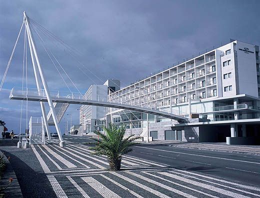 Остаток воскресенья мы посвятили знакомству с городком Понта Делгада. Яхтенная марина удобно расположена в историческом центре города, узкие улочки которого разбегаются от порта вверх по склону. Вдоль порта, от марины, на пару километров протянулась набережная - главная улица с отелями, магазинами, барами, ресторанами, историческими городскими воротами и вообще самыми красивыми зданиями. В конце набережной возвышается форт Святого Браса с музеем внутри. Над всем доминирует церковь Божьей Матери, стоящая на холме с которого открывается великолепный вид на город, порт, яхт-клуб, океан и стоящие на рейде суда.