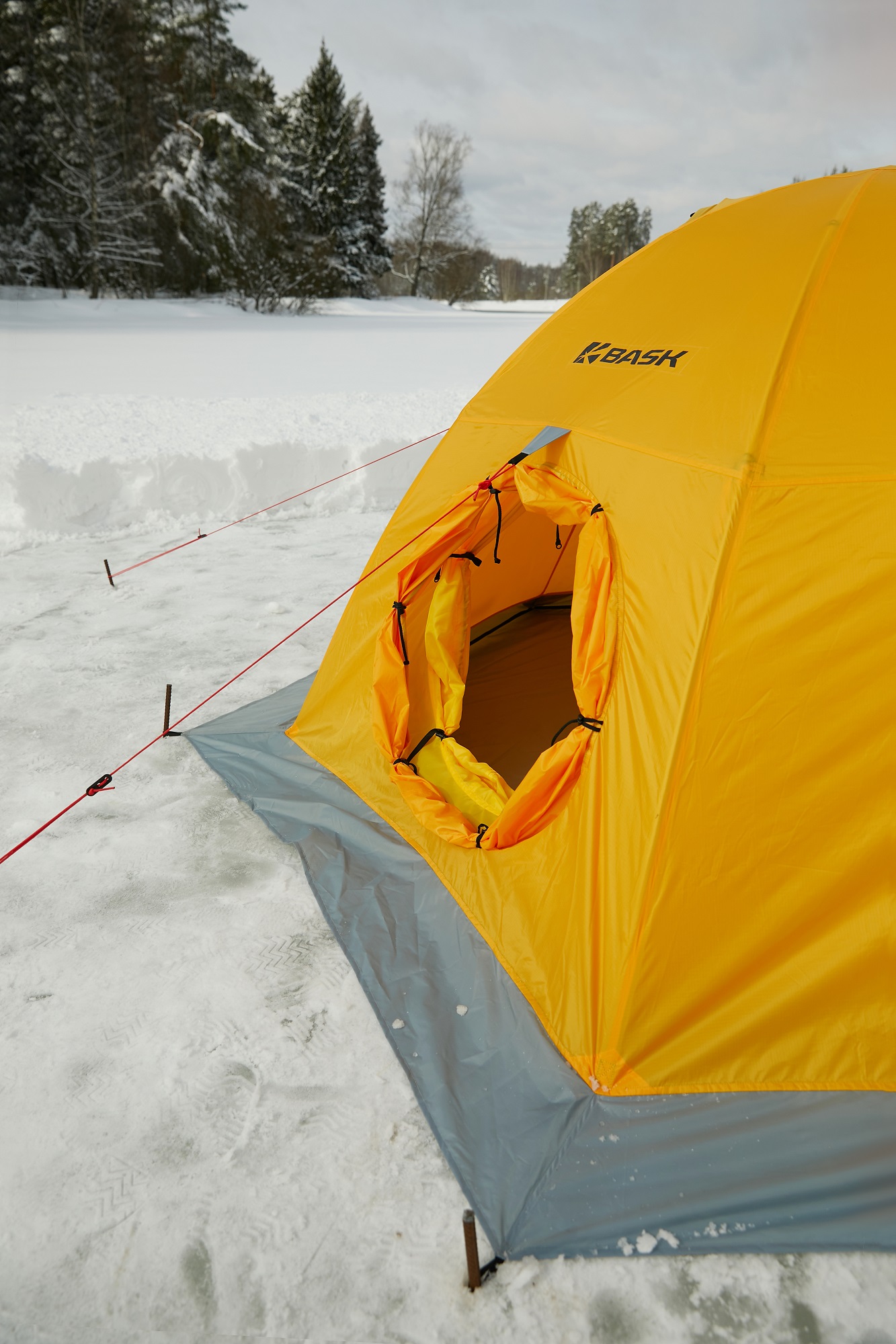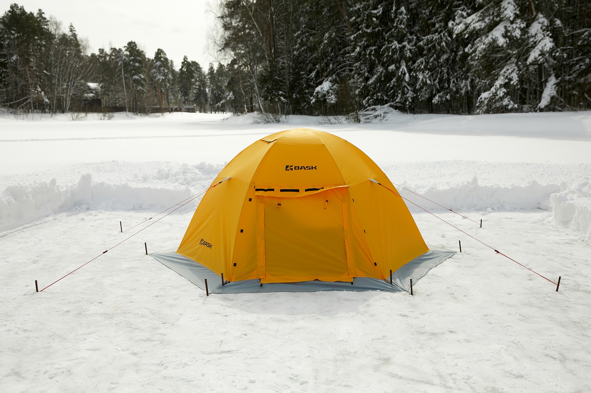 BASK HIGH PEAK V2 – зимняя палатка: двуслойная, с герметичным верхним тентом и проклеенными швами, – она подходит для длительного проживания в условиях больших высот. Для надежной защиты от непогоды и предотвращения продувания по дну внешний тент оснащен ветрозащитной юбкой из ткани с полиуретановым покрытием.