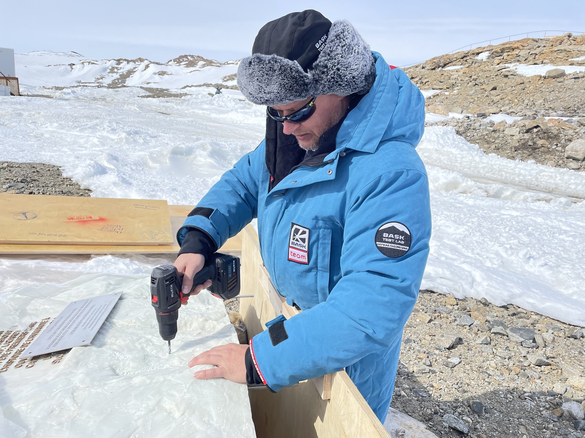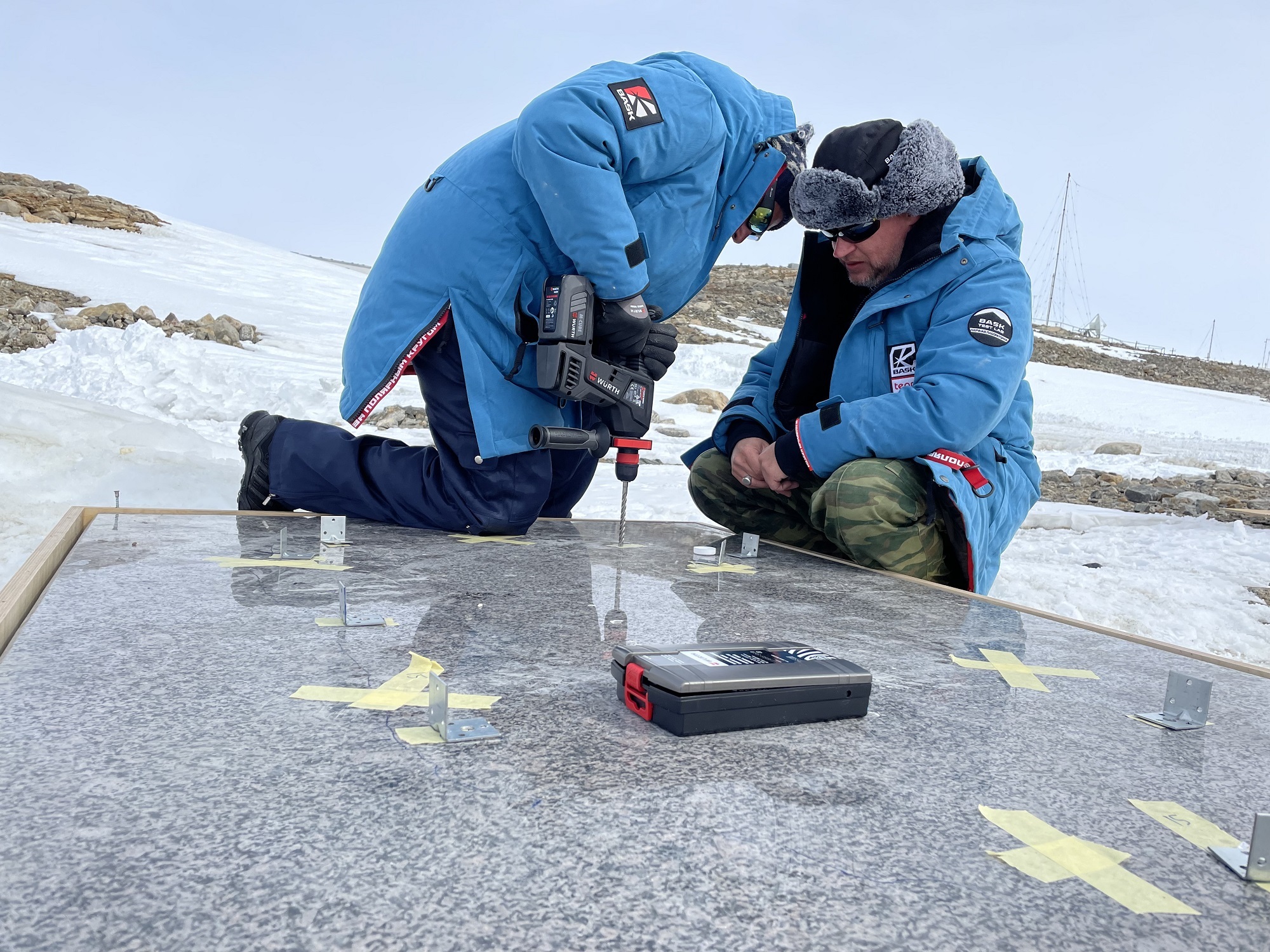 Установка монумента в таких условиях требовала профессионального подхода к экипировке монтажной бригады. В этом вопросе, как нельзя, кстати, пришлась экспертиза BASK, который подобрал для монтажников комплекты полярной одежды, с научной точностью рассчитав оптимальные для сохранения тепла и комфорта параметры.