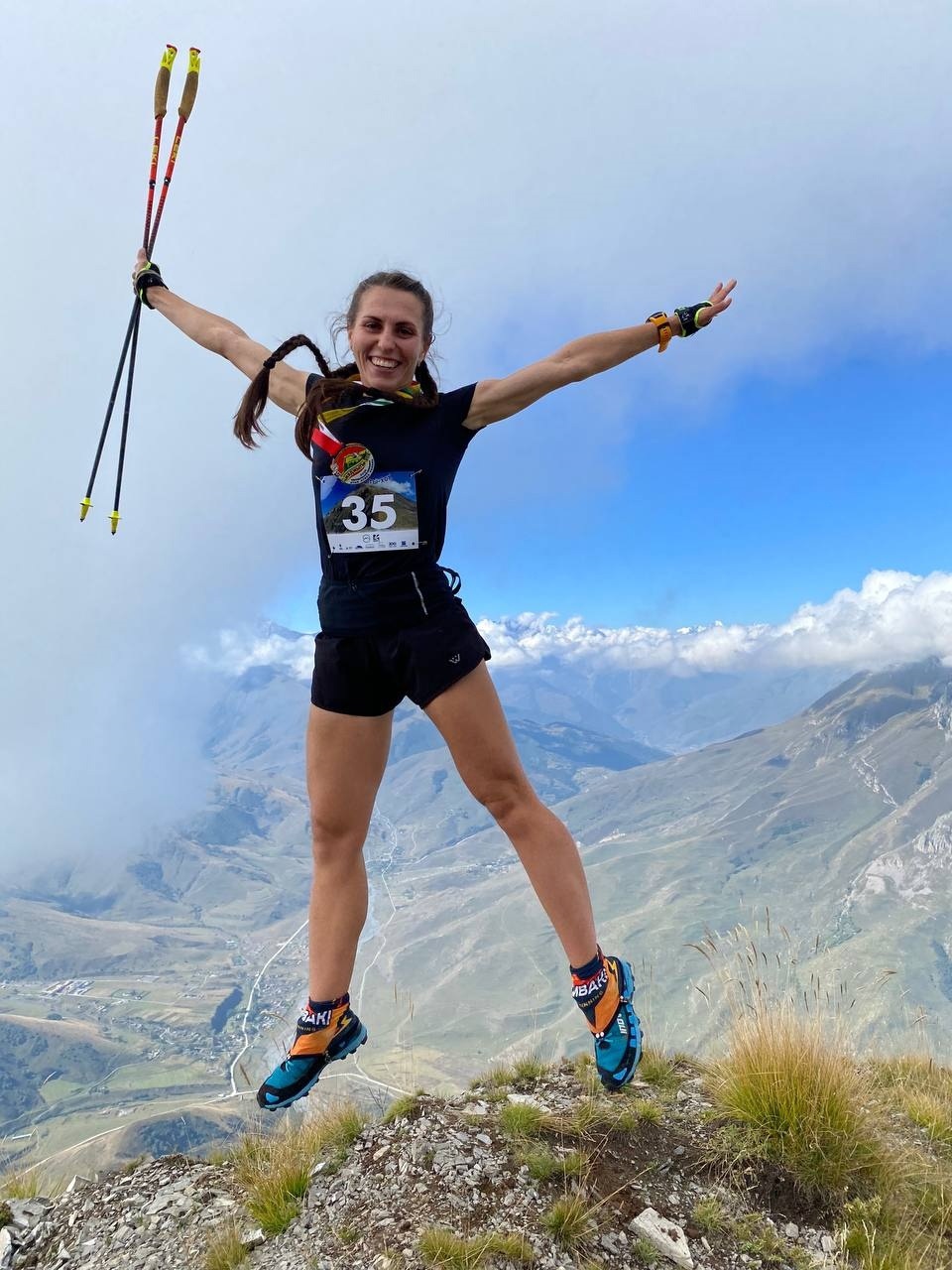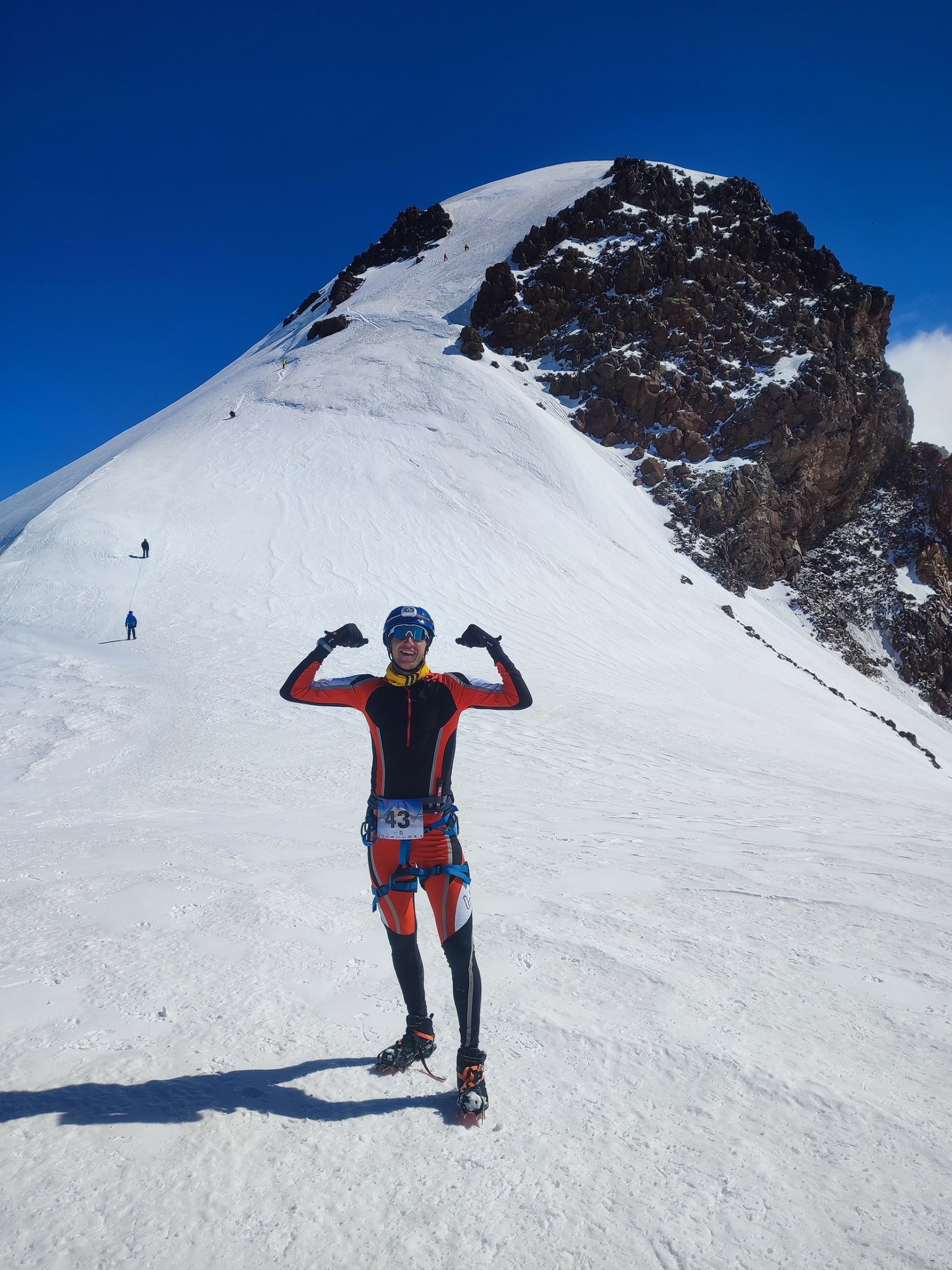 - Скоростной высокогорный подъем на вершину горы Казбек в классе «скайраннинг-марафон» (длина 18 км, набор 3330 м).